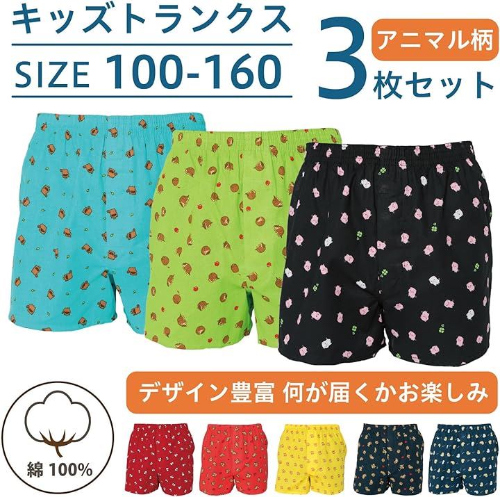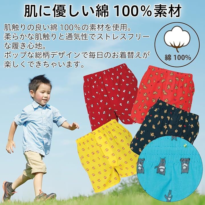 [Y's factory] キッズ トランクス ボーイズ パンツ 前開き カジュアル アニマル柄 カジュアル 綿100% 下着 ジュニア 子供 男の子 肌着 通学 通園 |