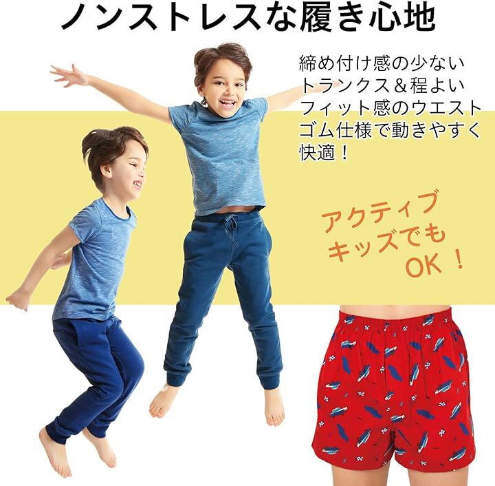 「デイリーユース:日常のあらゆるシーンに対応」 このキッズ トランクスは、学校や遊び、家でのリラックスタイムなど、日常のあらゆるシーンで活躍。