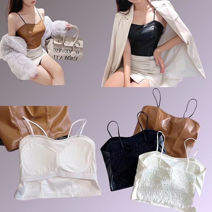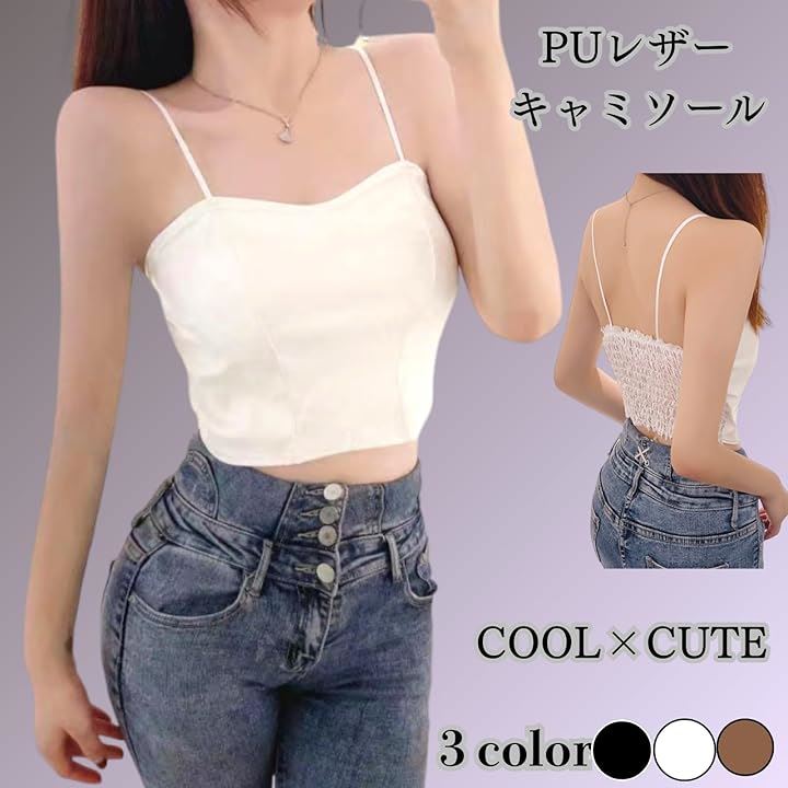 PUレザー キャミソール レディース トップス カップ付き シンプル インナー フェイク タンクトップ 無地 ブラトップ 通気 かわいい きれい おしゃれ かっこいい 人気 革