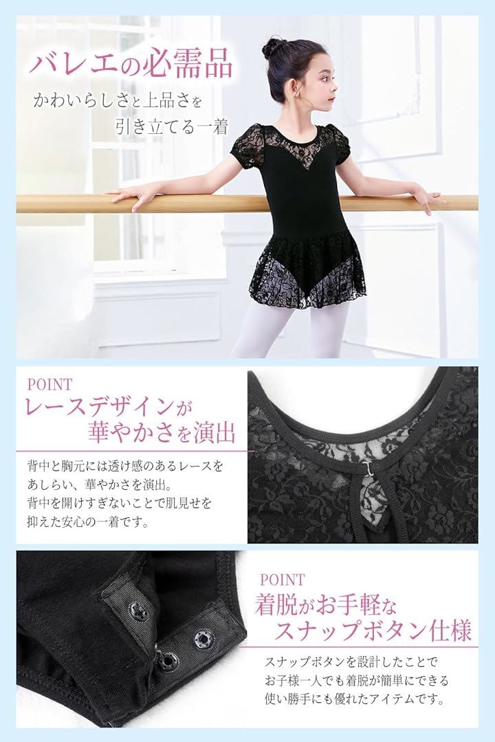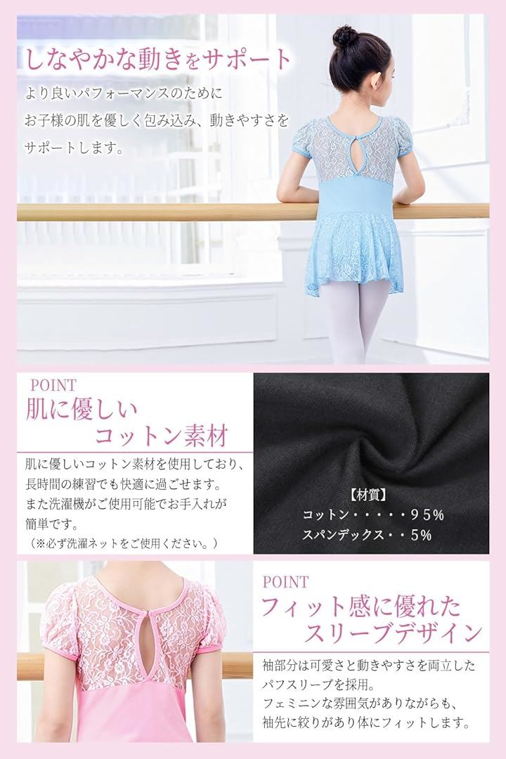「クローブキューブ」バレエ レオタード 子供 レース スカート 肌に優しい コットン素材 新体操 練習用 競技用 |