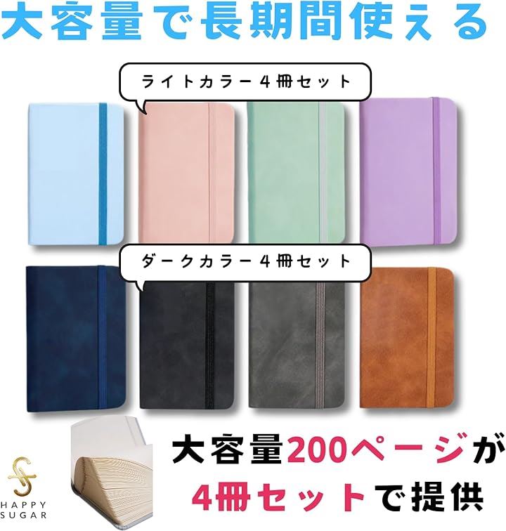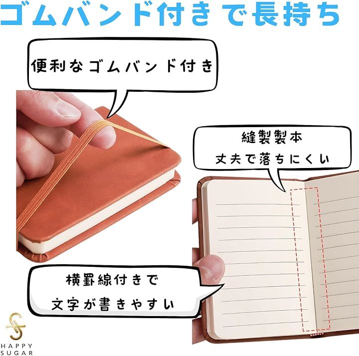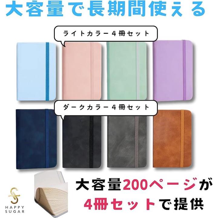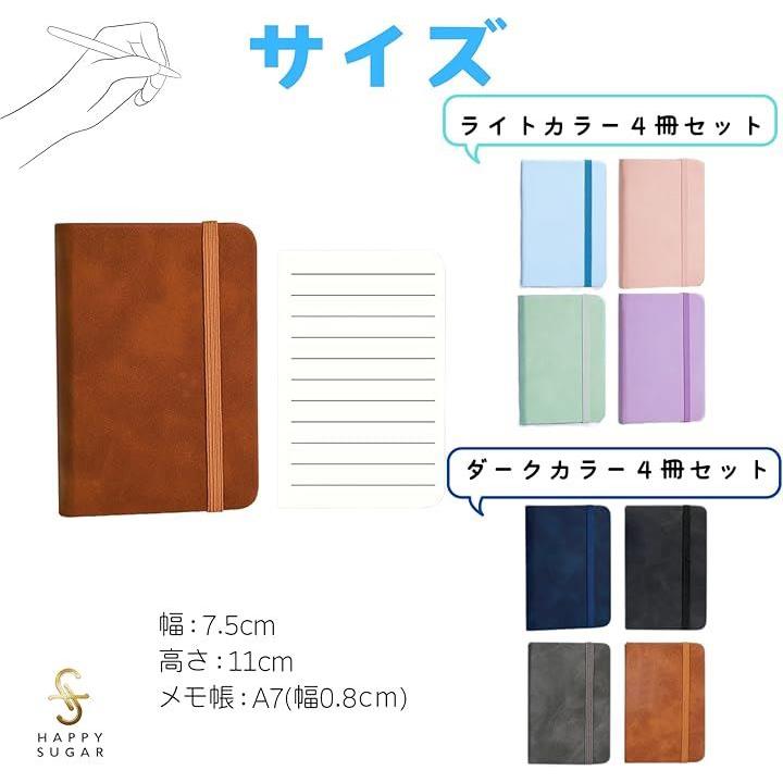 メモ帳 ポケットサイズ a7 小さいノート ミニメモ帳 ミニノート コンパクト 横書き 横罫 ゴムバンド付き 4冊セット