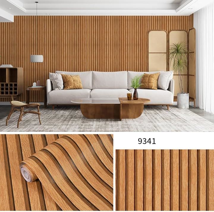 壁紙シール はがせる壁紙 リブウッド スラットウォール 防水 リメイクシート 45cmx10m 木目調 のり付き DIYシート ウォールステッカー 家具 小物