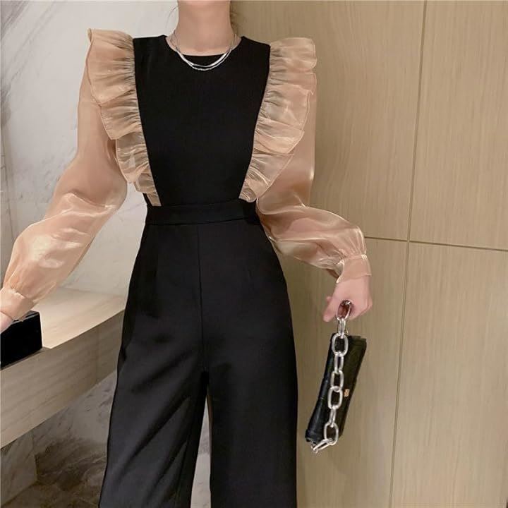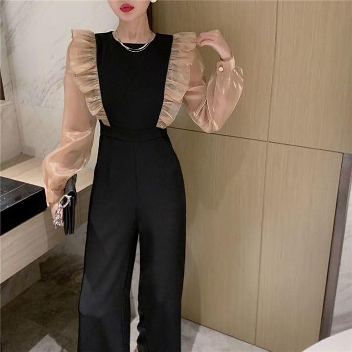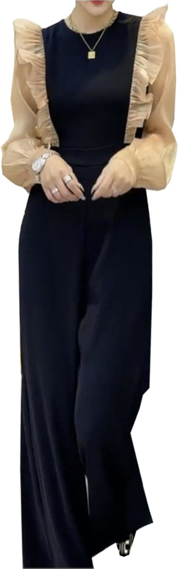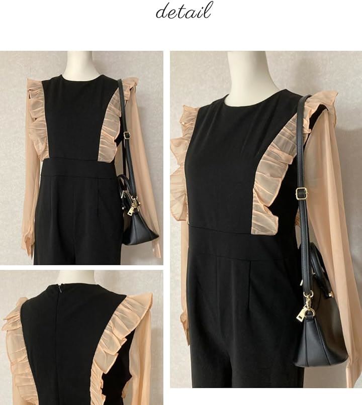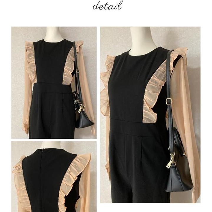 パンツドレス レディース 夏 マキシ丈 オールインワン セットアップ 黒 結婚式 長袖 袖あり お洒落 かっこいい スーツ パーティードレス ワイドパンツ