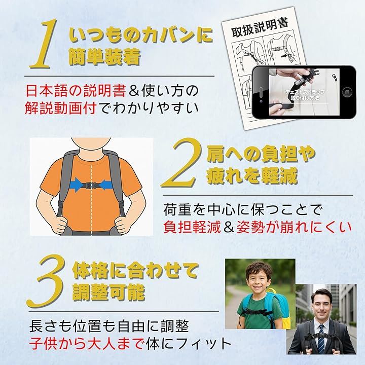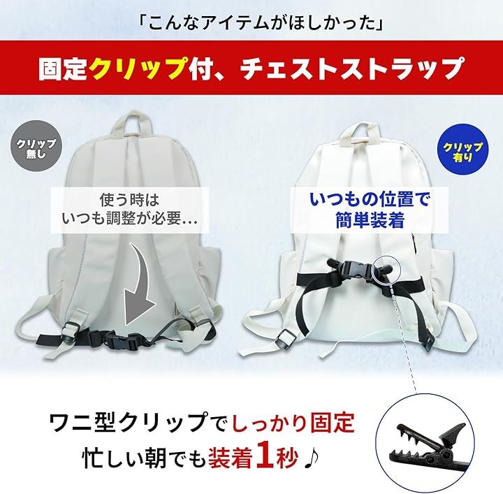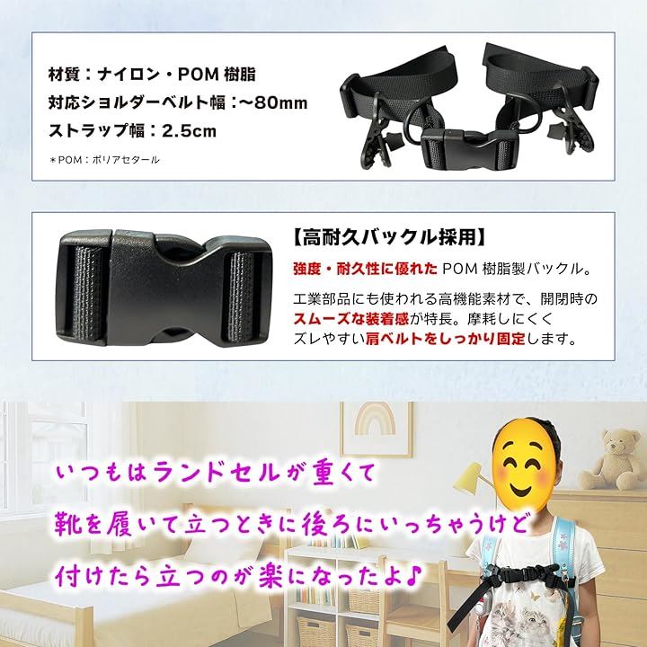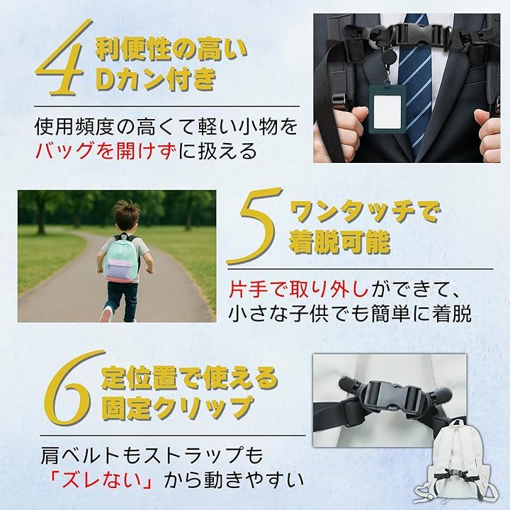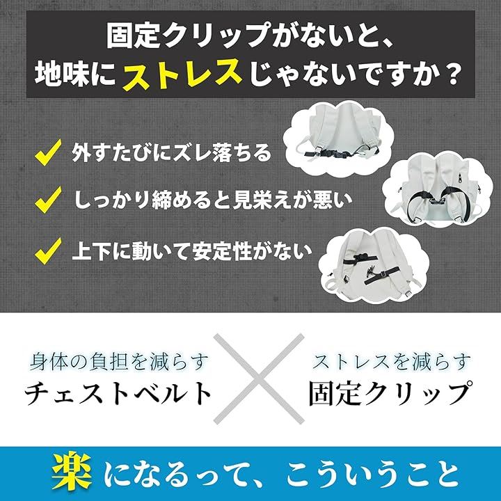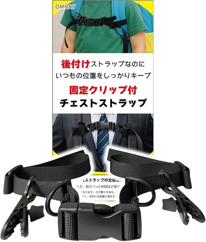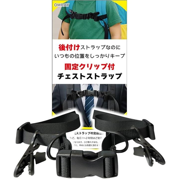 チェストストラップ バッグ用 チェストベルト Dカン付 固定クリップ付 ブラック