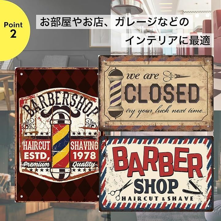 ブリキ 看板 プレート レトロ ガレージ アンティーク インテリア 散髪 ND-0192-R04
