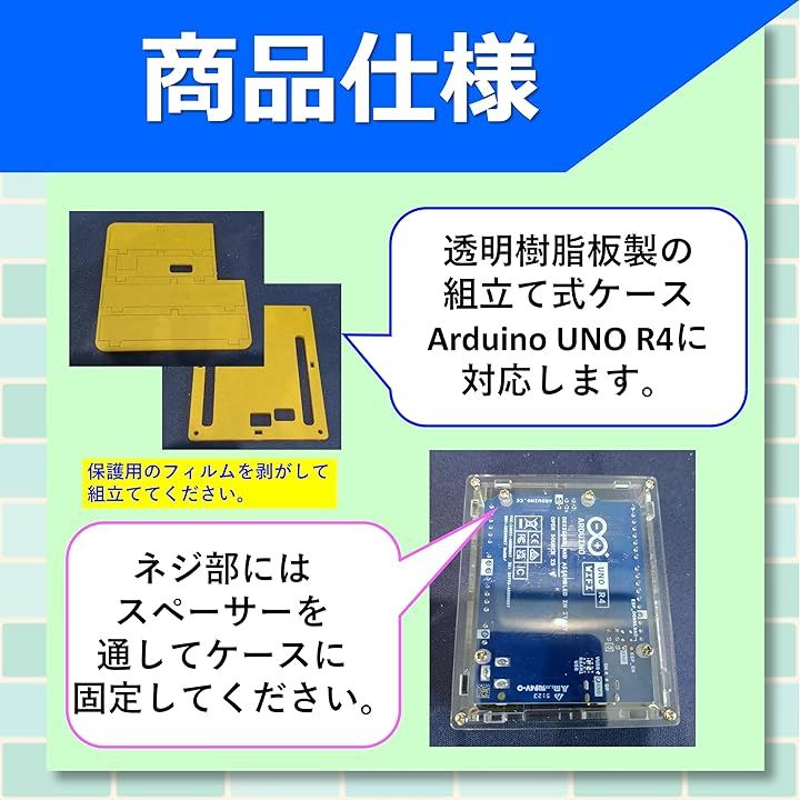 Arduino UNO R4 WiFi 対応 アクリルケース 保護カバー スタンド付き 透明 ねじ付属 組み立て簡単