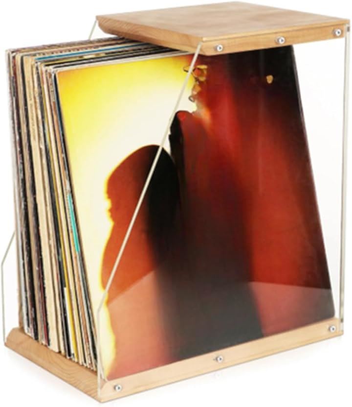 木製 レコード 収納 ラック プレーヤー ケース ボックス スタンド アクリル ホルダー ディスプレイスタンド 良質木材 透明ケース おしゃれに収納 棚 箱