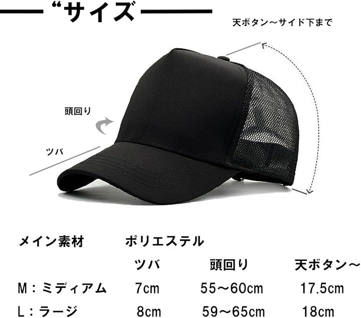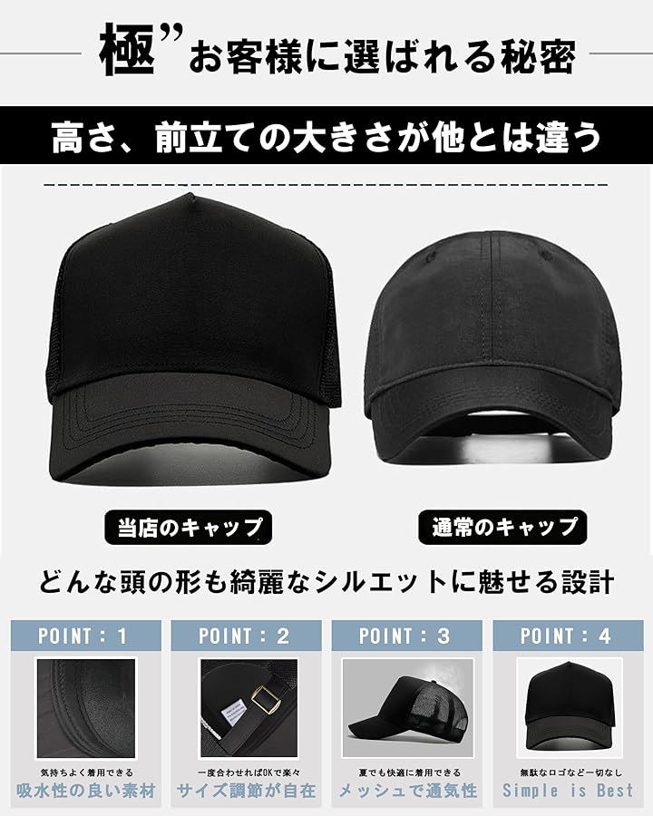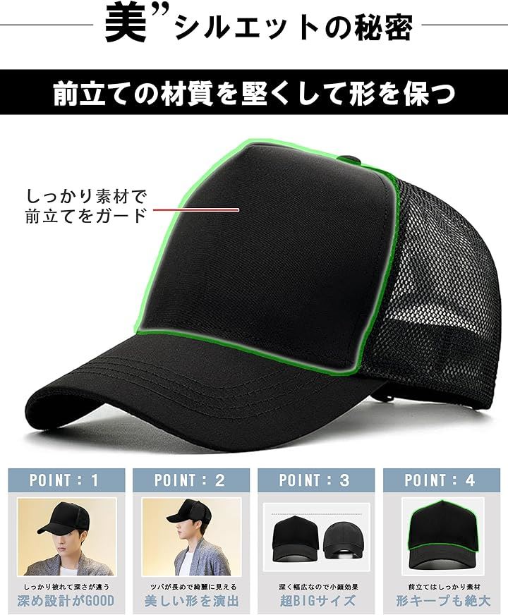 メッシュキャップ 大きいサイズ 無地 深め シンプル メンズ 帽子