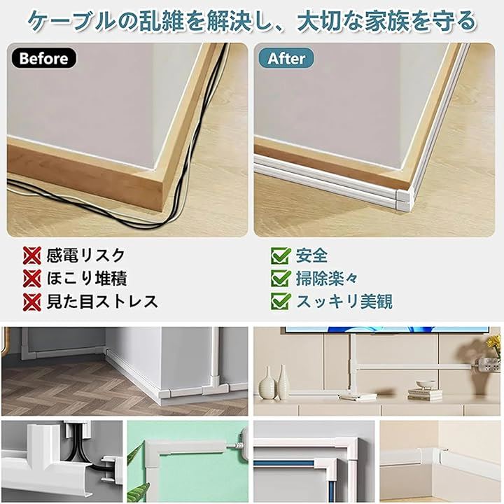 配線カバー モール コード隠し ケーブル隠しカバー コードプロテクター 簡単設置 電線ケーブルカバー 40x 1.5x0.9cm