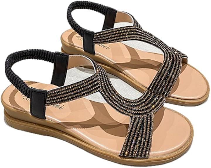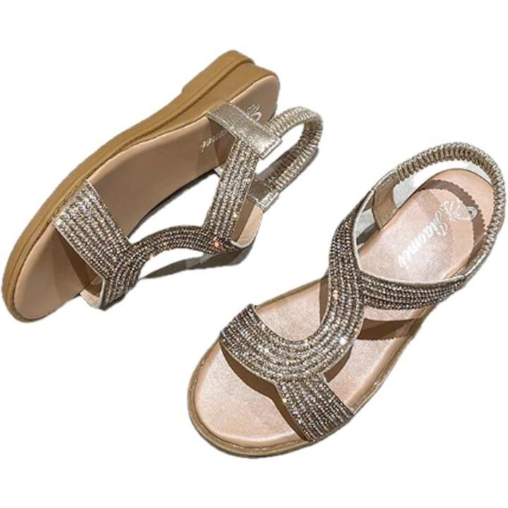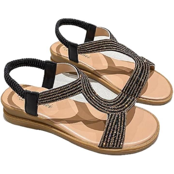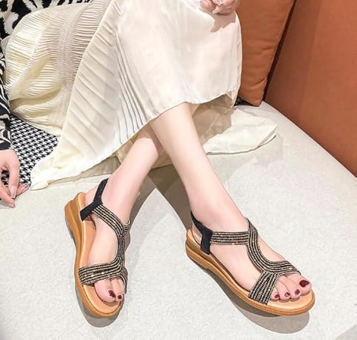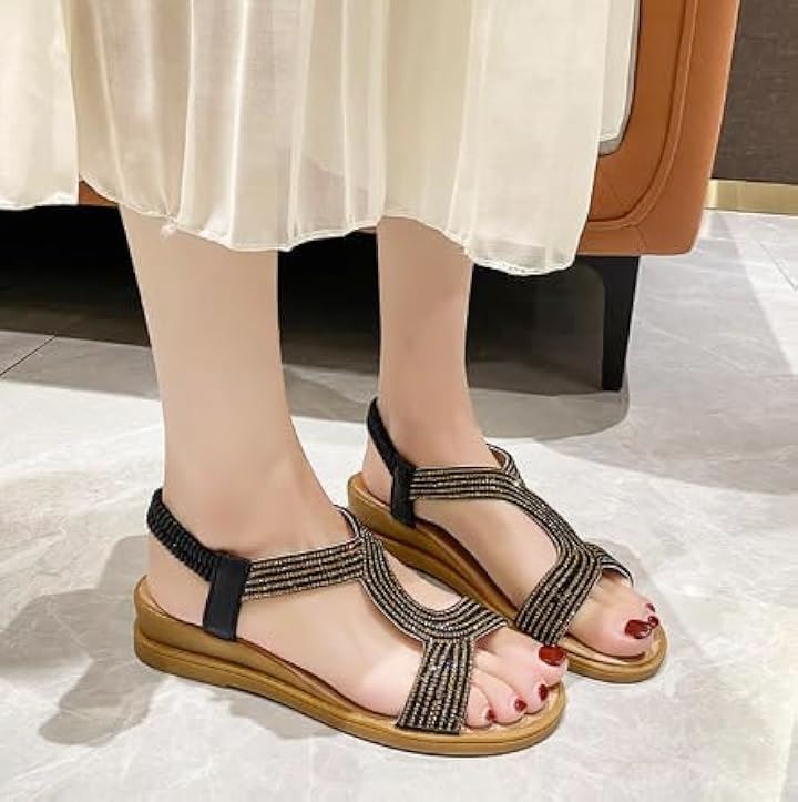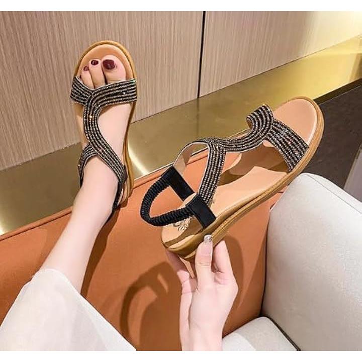 [ ローヒールで長時間歩いても疲れにくい快適さ ] ヒールが高すぎず、足への負担を抑えたローヒール設計のこのサンダルは、見た目の華やかさとは裏腹に、長時間の歩行でも快適さをキープしてくれる優秀な一足です。