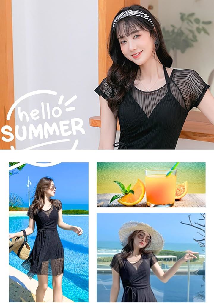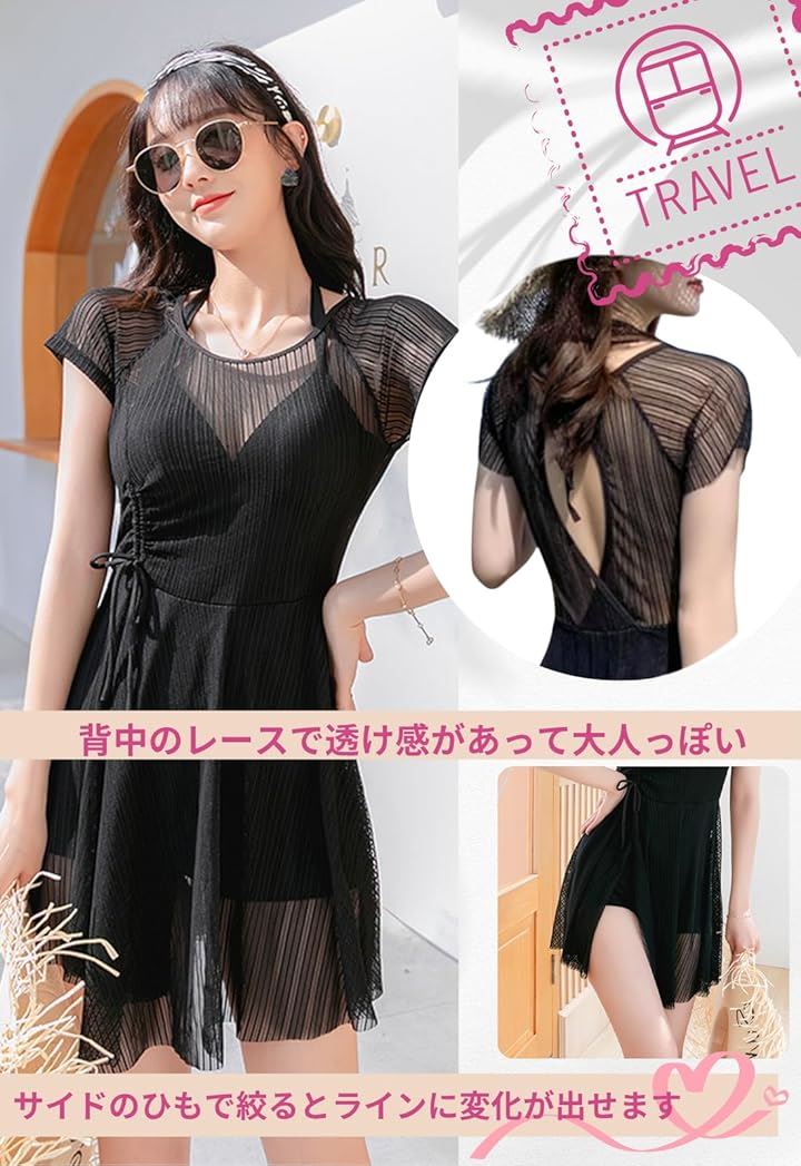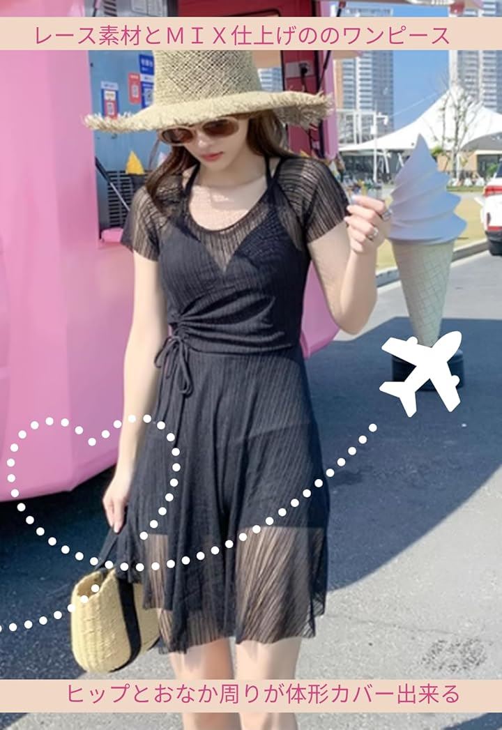レディース 水着 スイムウェア ワンピース パッド付 体型カバー ママ レース 無地 ベーシック タンキニ シンプル プール 大人 女子 ビーチウェア 夏