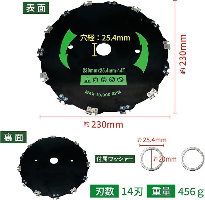 互換品 草刈り機 チップソー 替え刃 草刈り機の刃 草刈り刃 草刈機 芝刈機 230mm 14刃