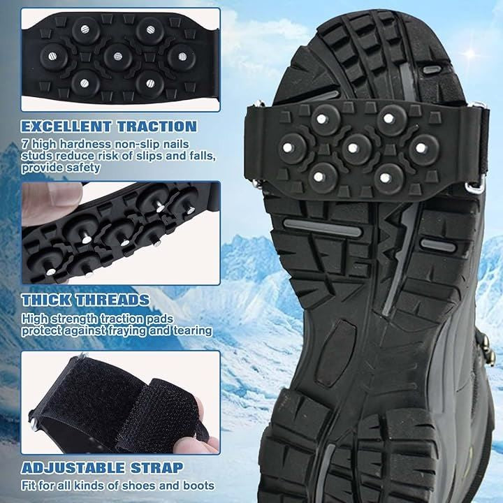 滑り止めスパイク アイゼン シューズスパイク すべり止めスパイク チェーンスパイク 着脱式スパイク 雪 靴 7本爪 アップグレード版 簡単装着 クイックフィット スノー 登山 通勤 通学 凍結道路 対策 多種靴適応