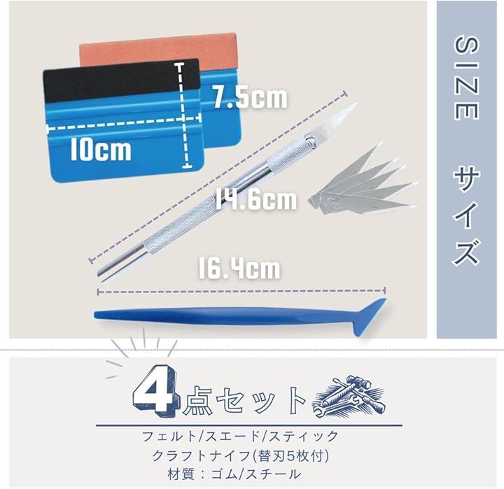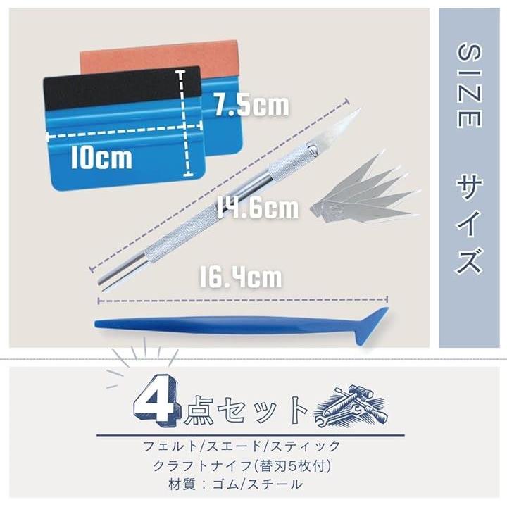 カーフィルム 施工キット カーステッカー 工具 へら ゴムヘラ フェルト 気泡防止