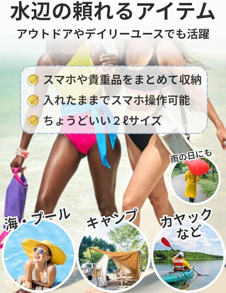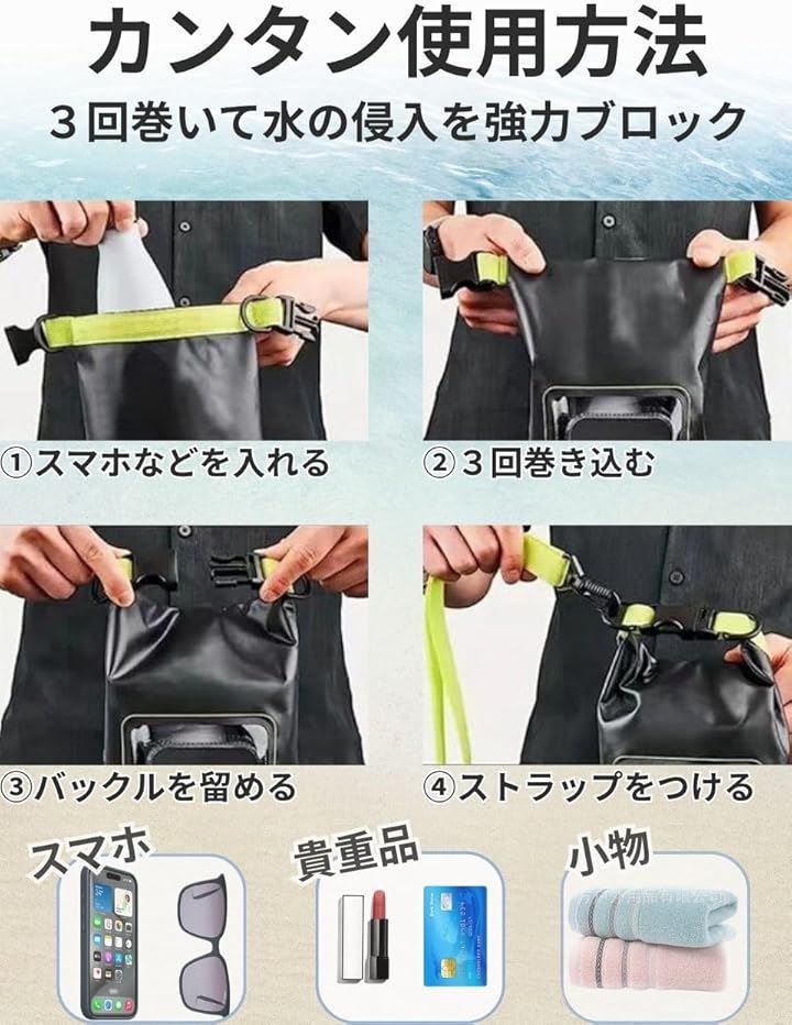 ドライ バッグ 防水 スマホ ポーチ 小物入れ 撥水 軽量 収納 防災 プール 海 アウトドア 釣り