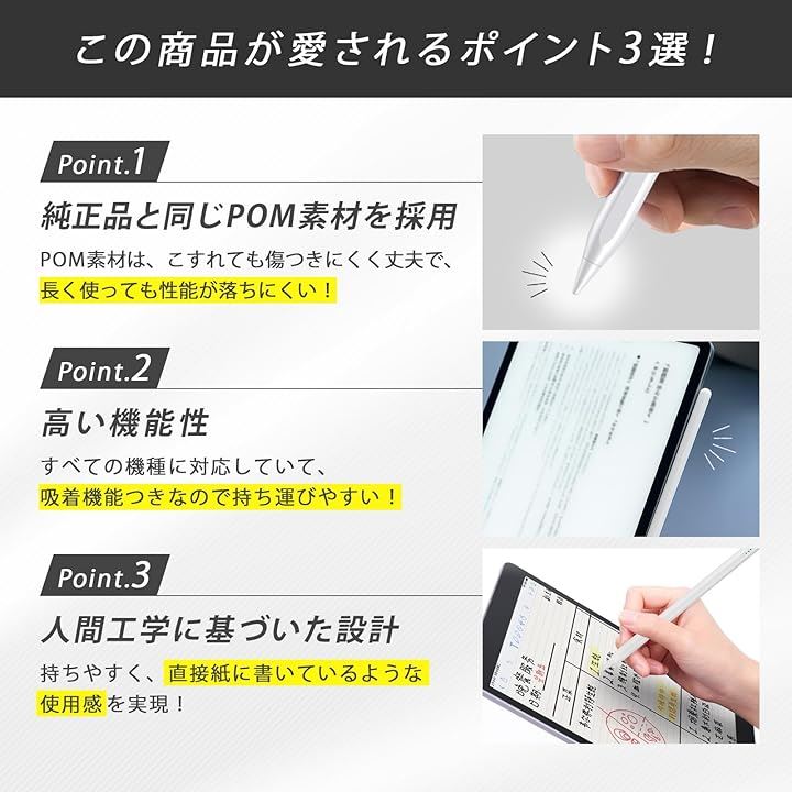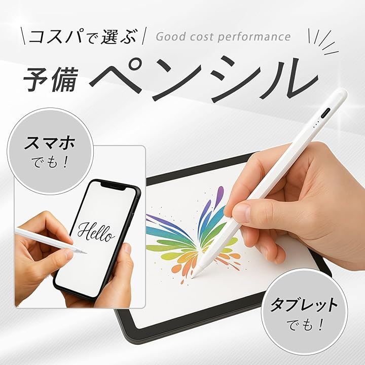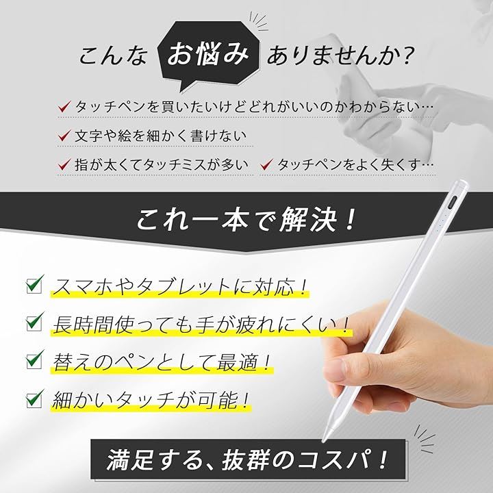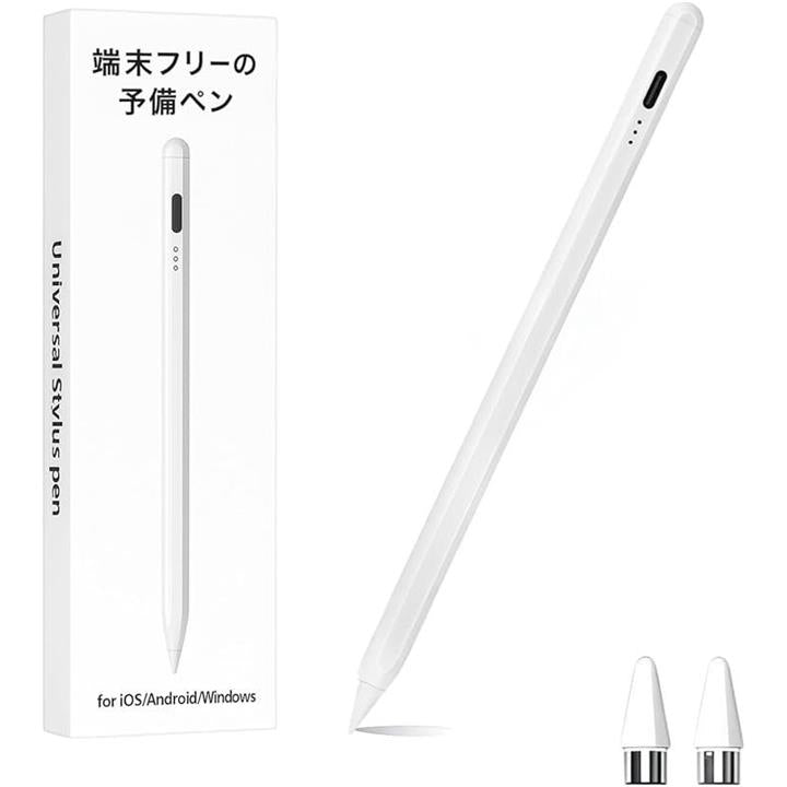 タッチペン スタイラスペン ペンシル 全機種対応 極細 超高感度 磁気吸着 軽量 Type-C急速充電 iPad iPhone Android Windowsタブレット用 デザイン ドローイング
