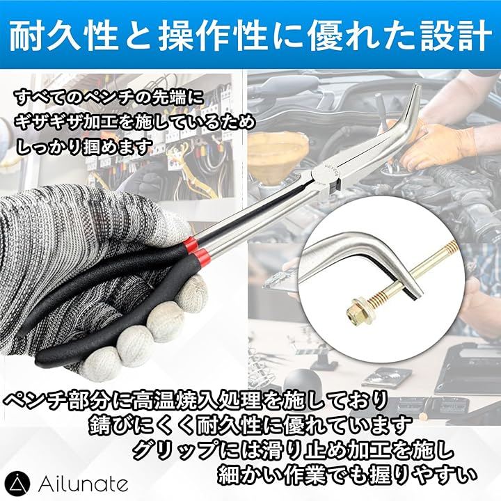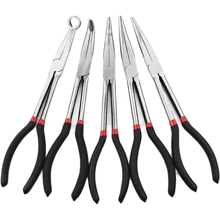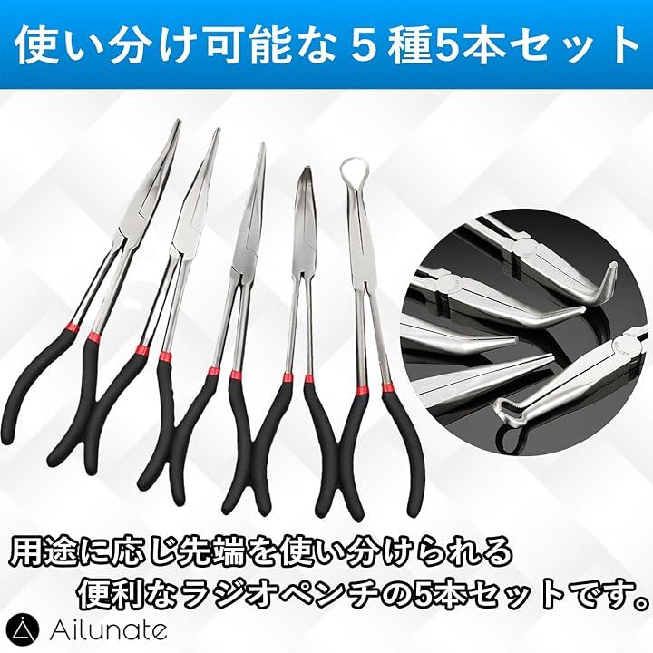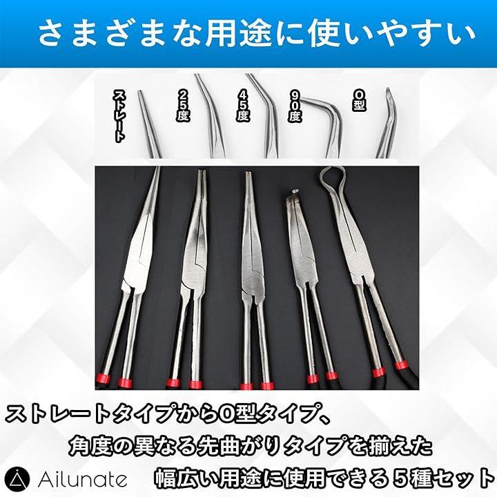 ラジオペンチ ロング プライヤー 先細 ギザギザ加工 先曲がり 0度 25度 45度 90度 O型 5本セット