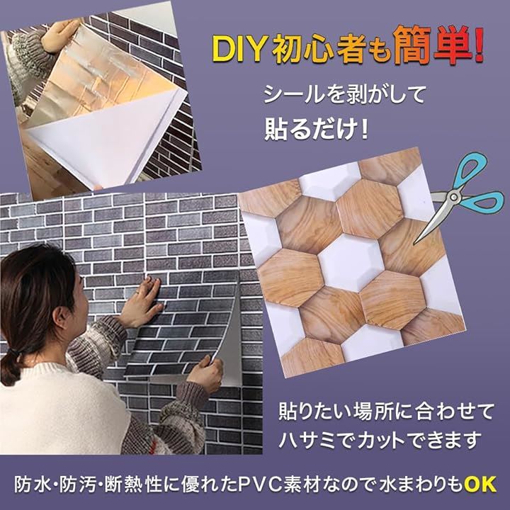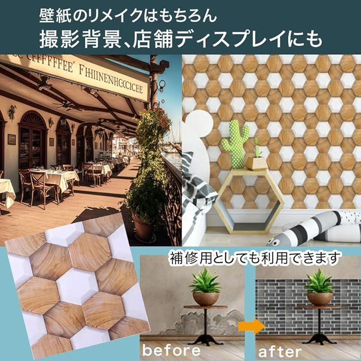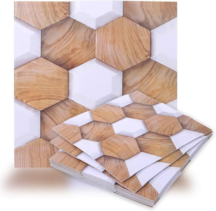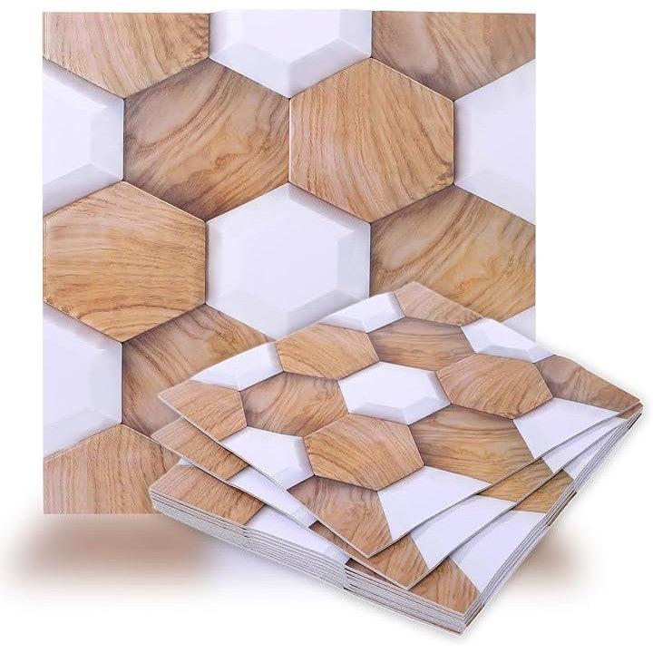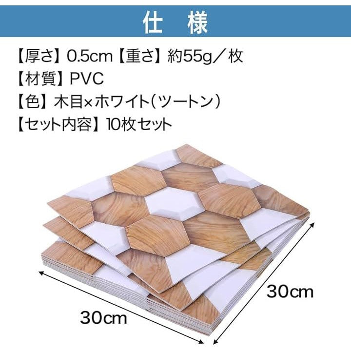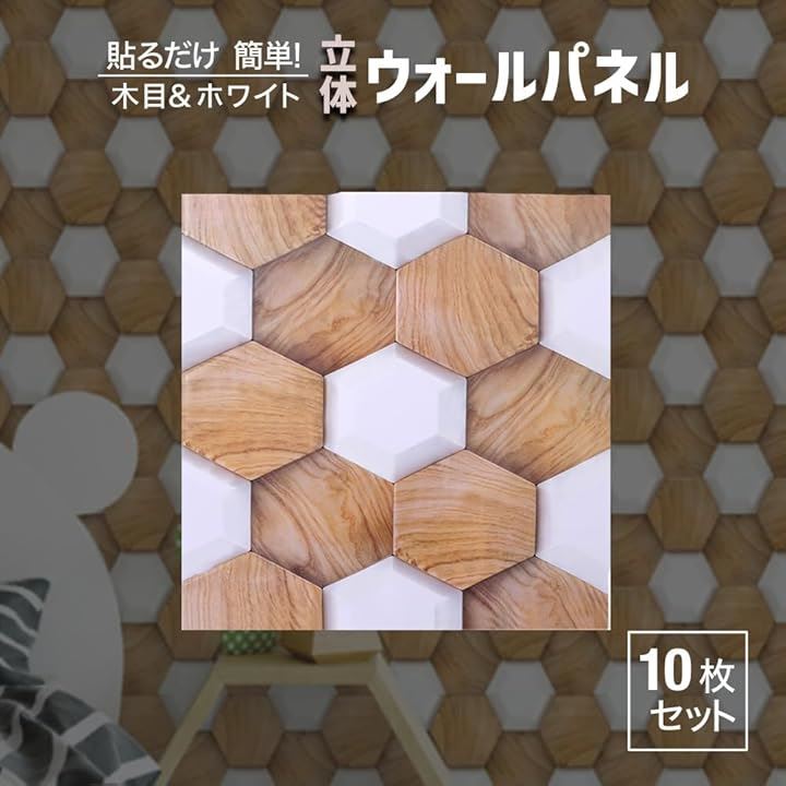 アウプル 壁紙 ウォールパネル 3D 10枚セット ハニカム 木目 タイル シール モダン調 白 DIY リメイク用 剥がせる 賃貸