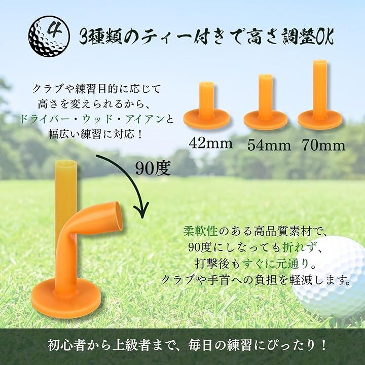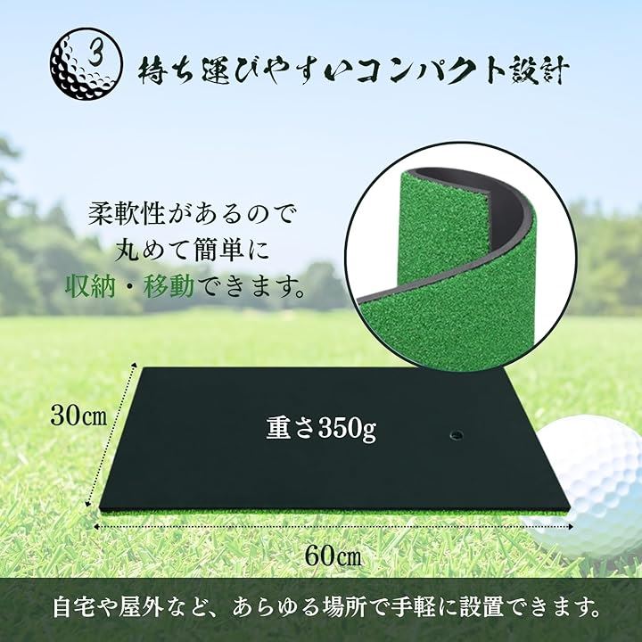 ゴルフ マット 素振り スイング 練習 人工芝 コンパクトサイズ ティー付き 4点セット