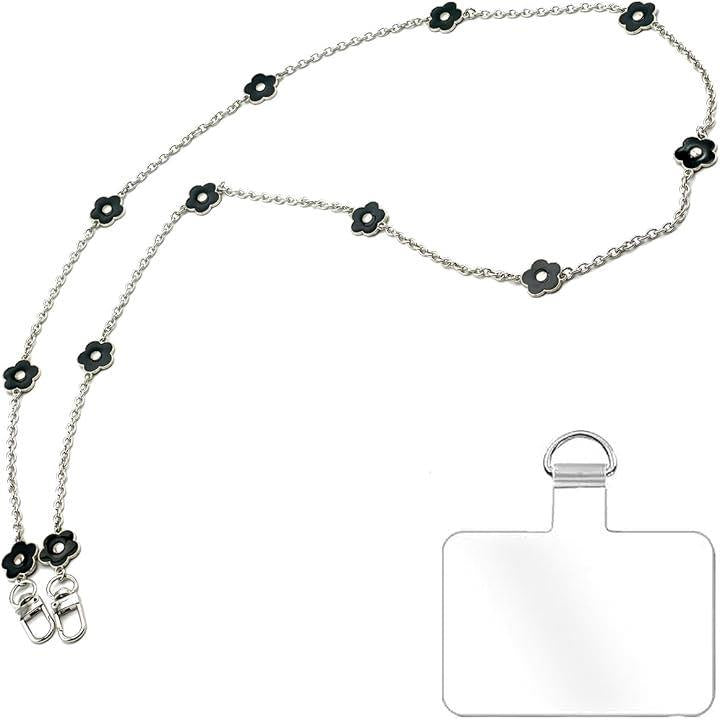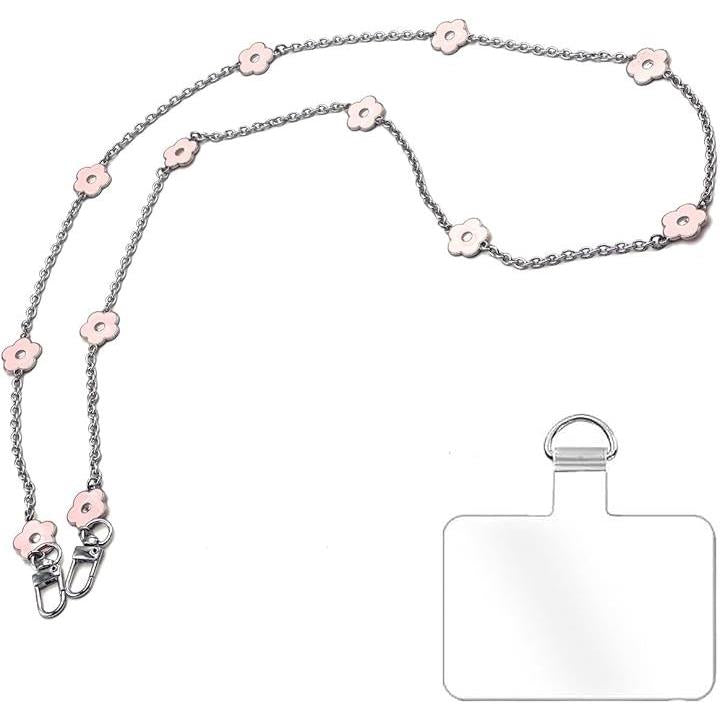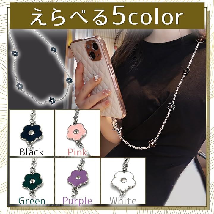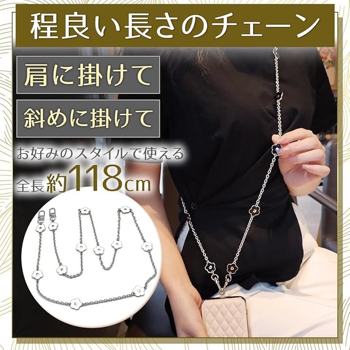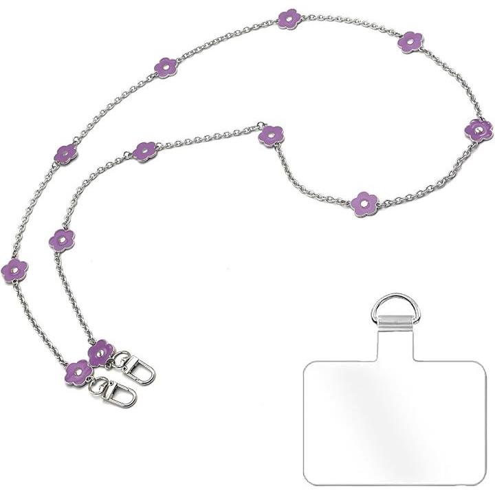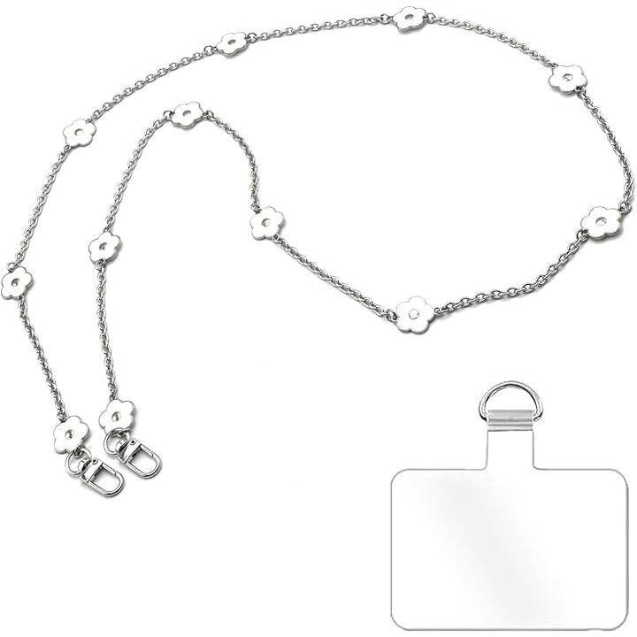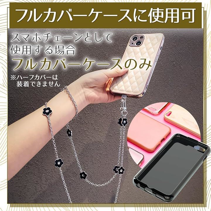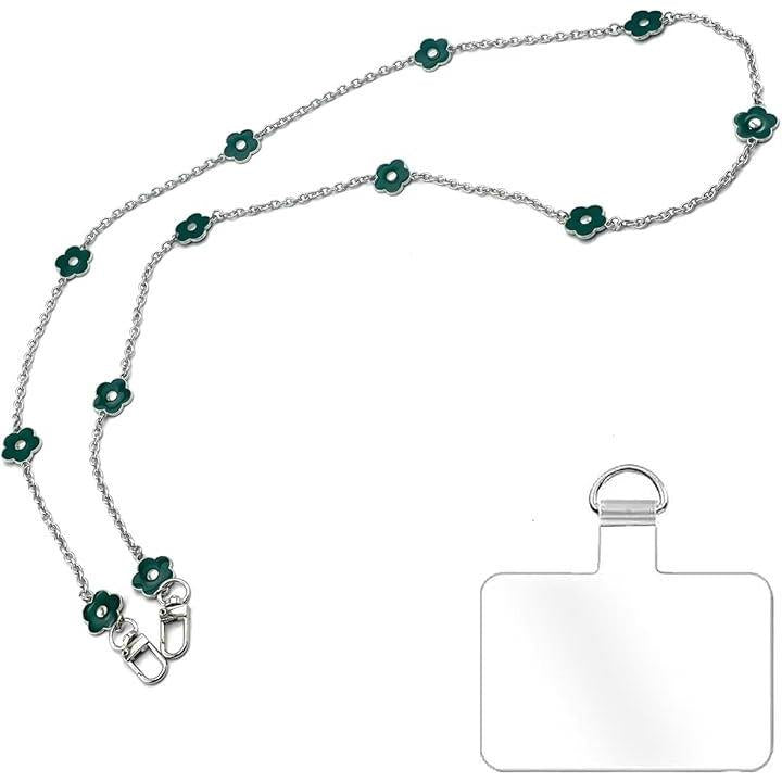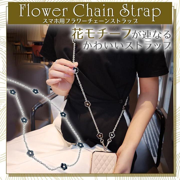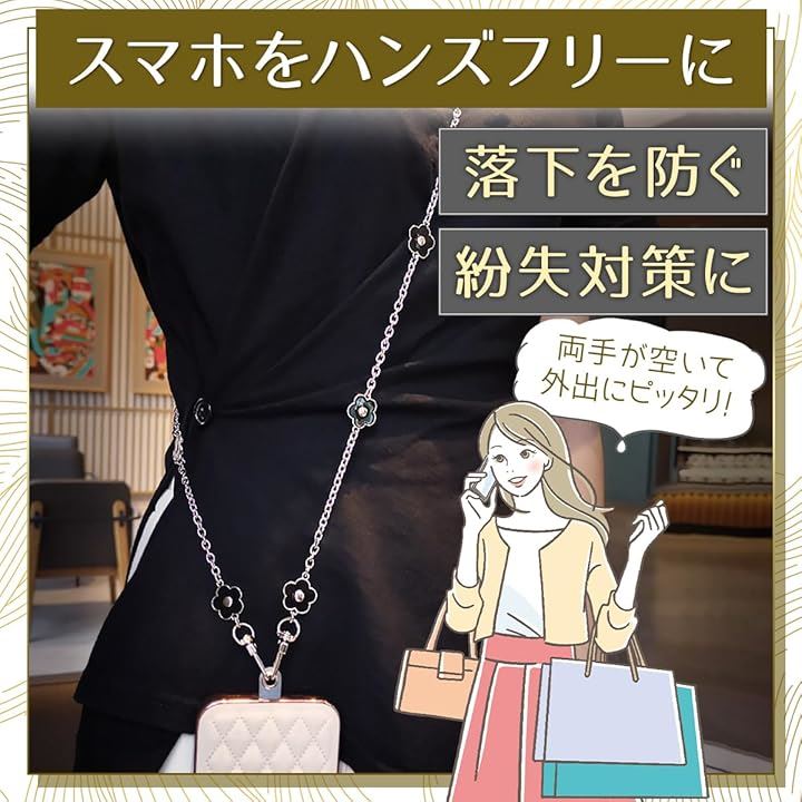 スマホショルダー チェーンストラップ 花柄 斜めがけ 首掛け 肩掛け 携帯ストラップ スマホストラップ シルバーチェーン おしゃれ かわいい 細め iPhone Android 全機種対応 紛失・落下防止 パッチ1枚