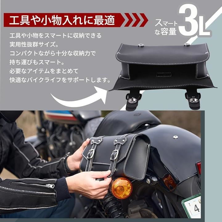 DAWNHAWK バイク ツールバッグ サイドバッグ ツーリングバッグ 3L 大容量 金具防錆 工具入れ 撥水 レブル250