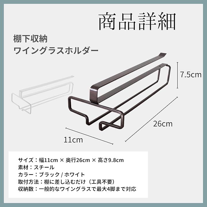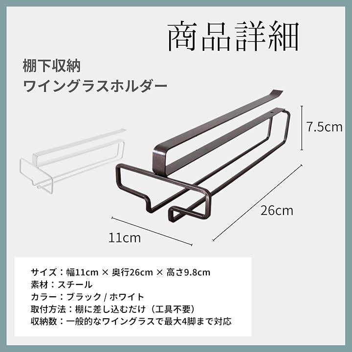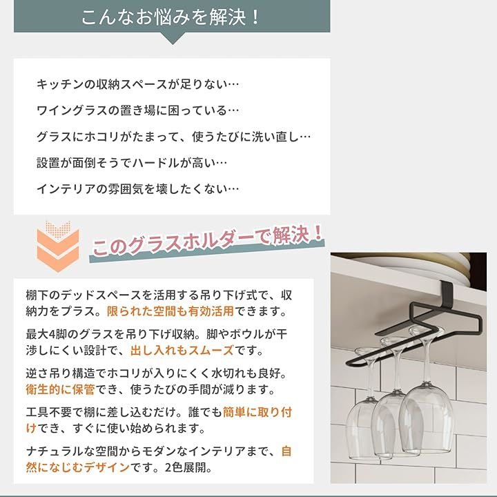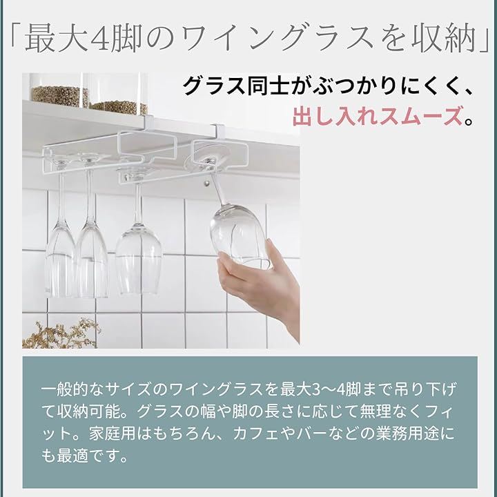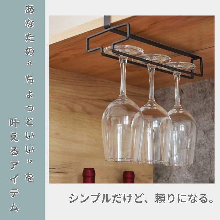 ワイングラスホルダー 収納 吊り下げ 戸棚下 ハンガー ラック 穴あけ ネジ止め不要 取り付け簡単