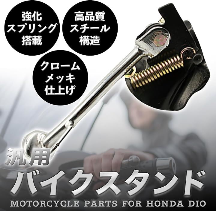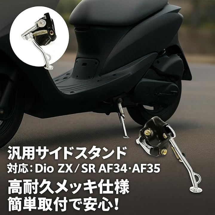 互換品 バイク サイドスタンド ライブ DIO 汎用 AF34 AF35スチール製 補助スタンド 簡単取付 クロムメッキ
