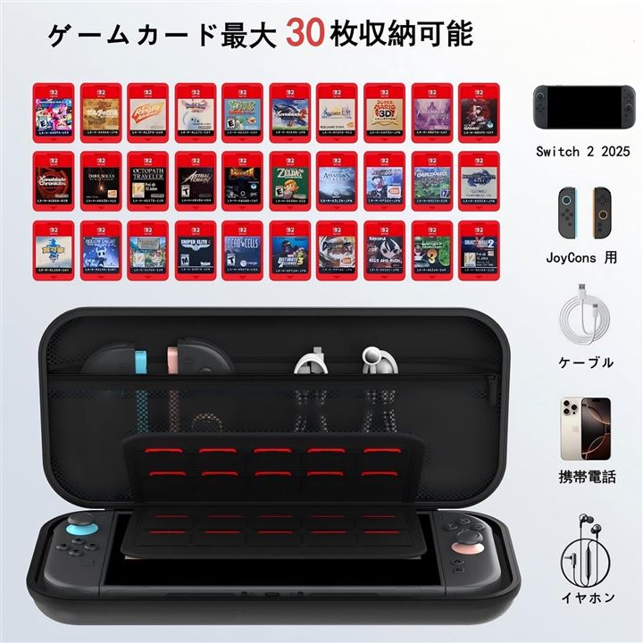 switch2 ケース EVAキャリングケース 保護カバー 30枚ゲームカードスロット 2025専用 7.9 インチ画面 スイッチ 2収納ケース 大容量収納バッグ 持ち運び 2用