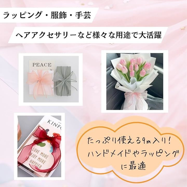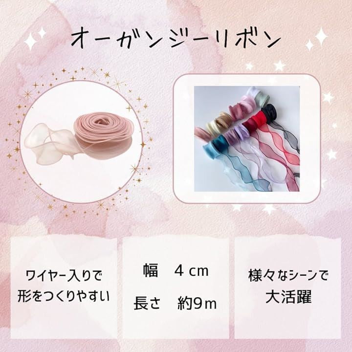 オーガンジーリボン 幅4cm 長さ約9m 透け感 手芸 ラッピング 結婚式
