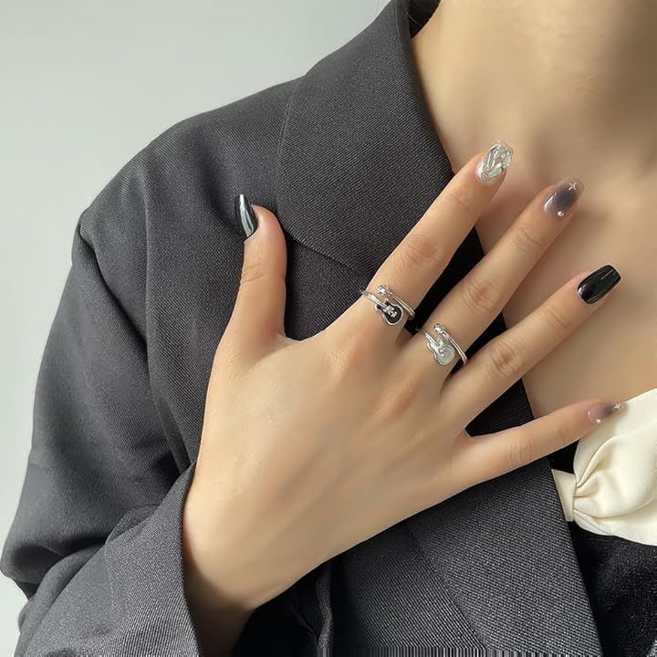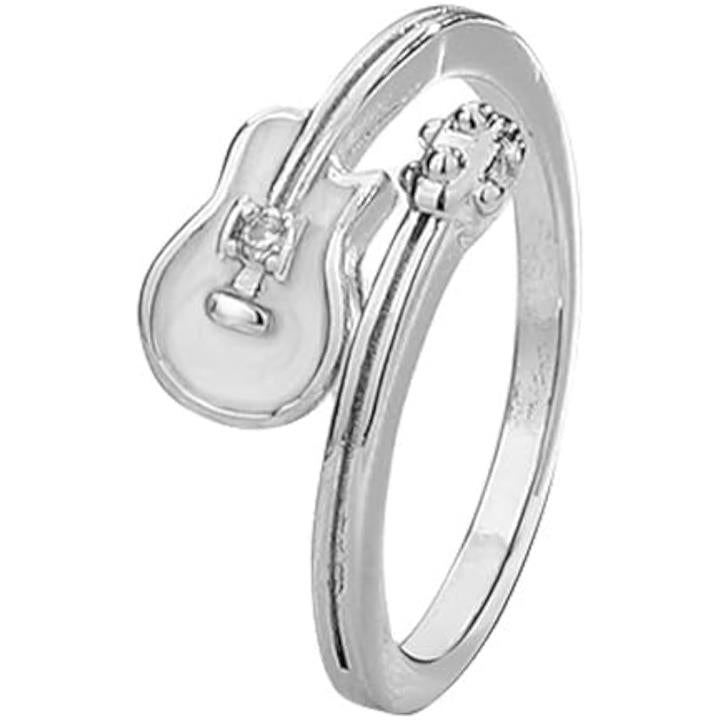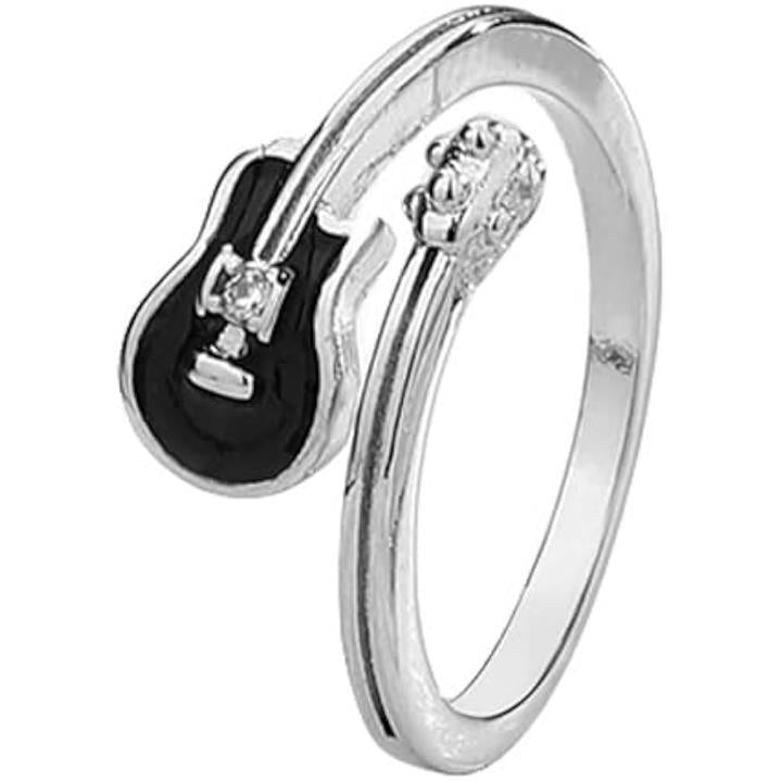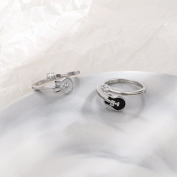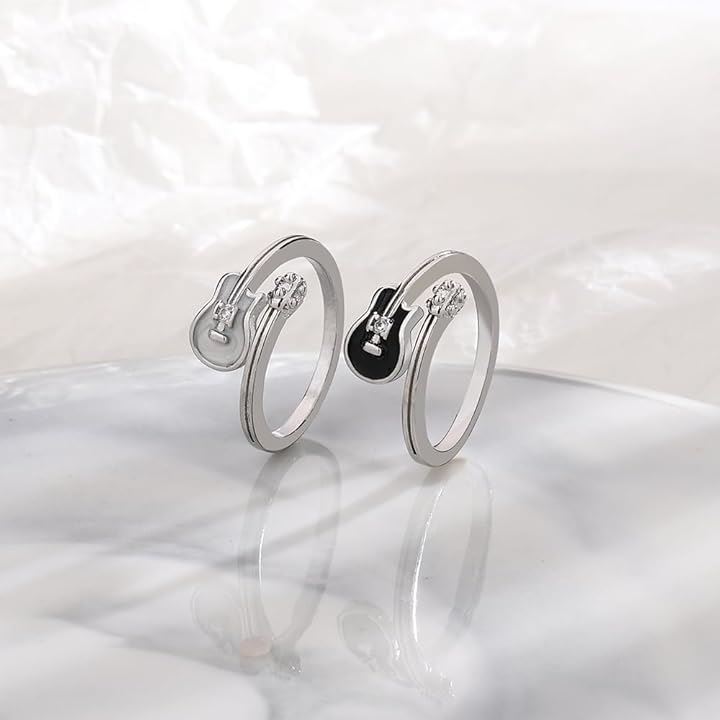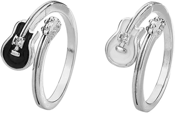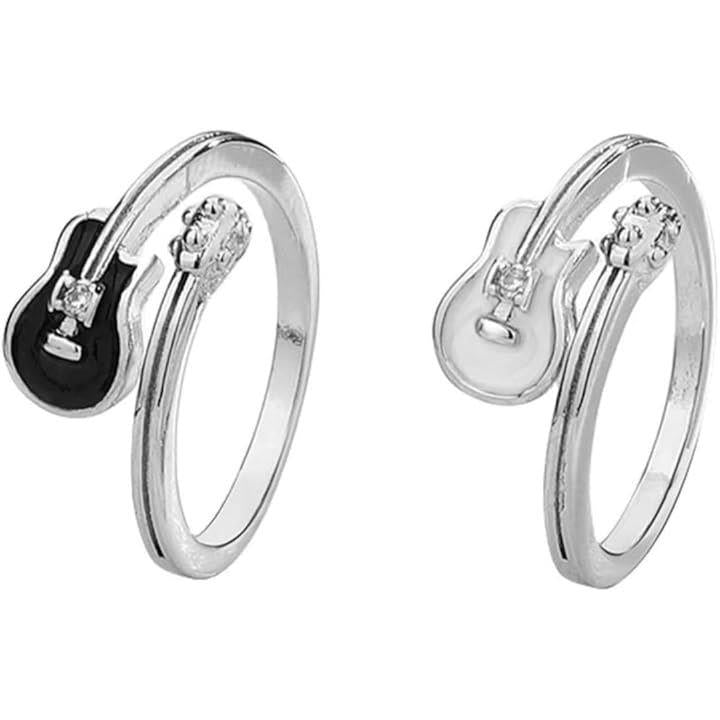 ギター 指輪 ホワイト ブラック 2点セット ギターリング 調整可能 スプーンリング 楽器 アクセサリー 2個