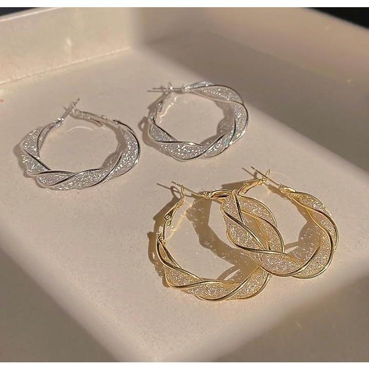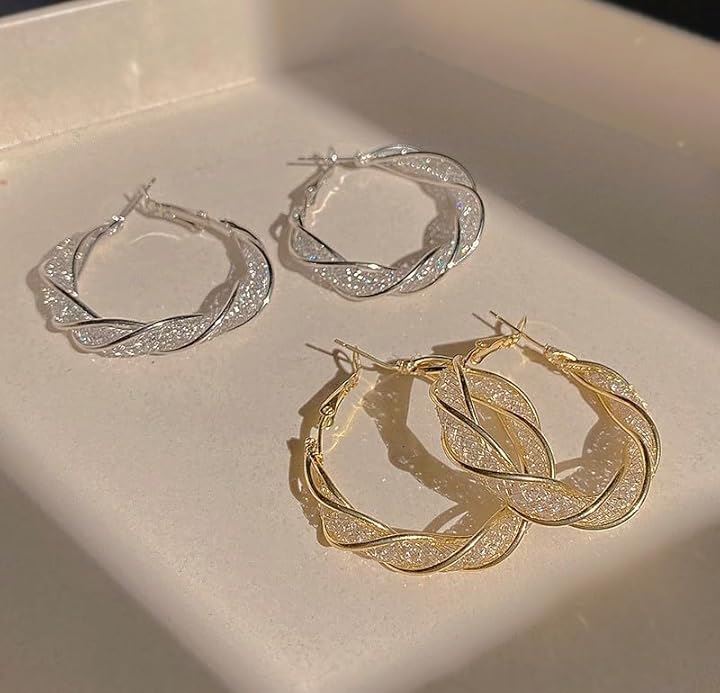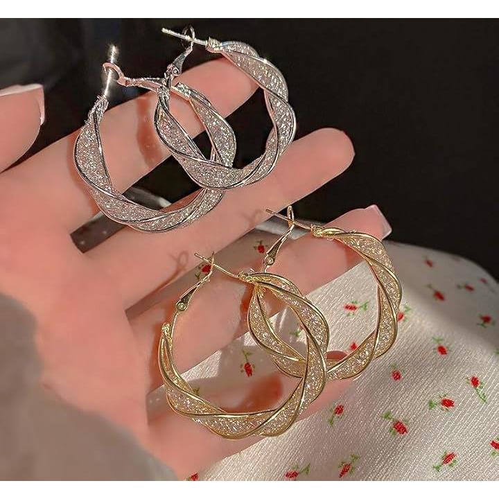 ピアス ツイスト 大きめ 両耳 フレーム 編み目ピアス レディース 存在感あり アクセサリー 2つ入り