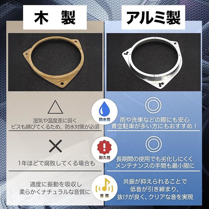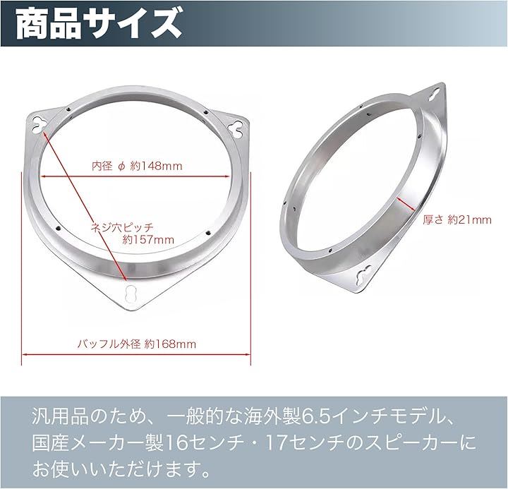 互換品 インナーバッフル スペーサー 6.5インチ 16センチ 17センチ 汎用 車用 スピーカー 対応 アルミ製