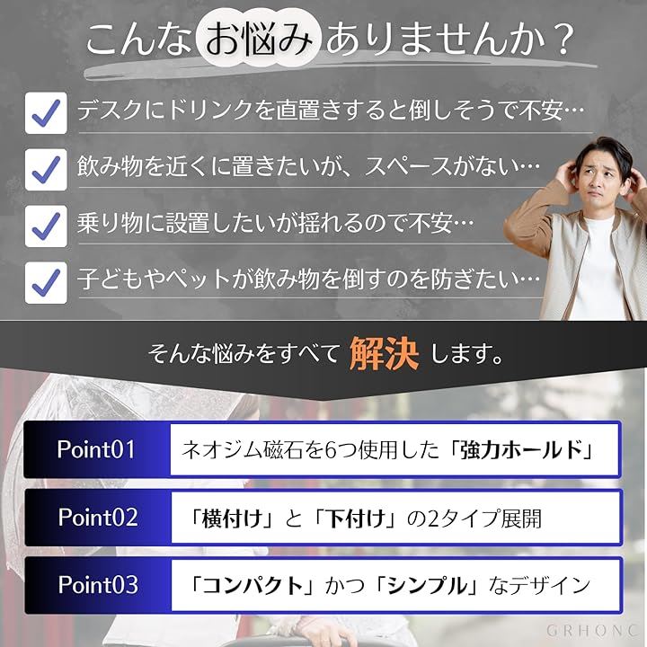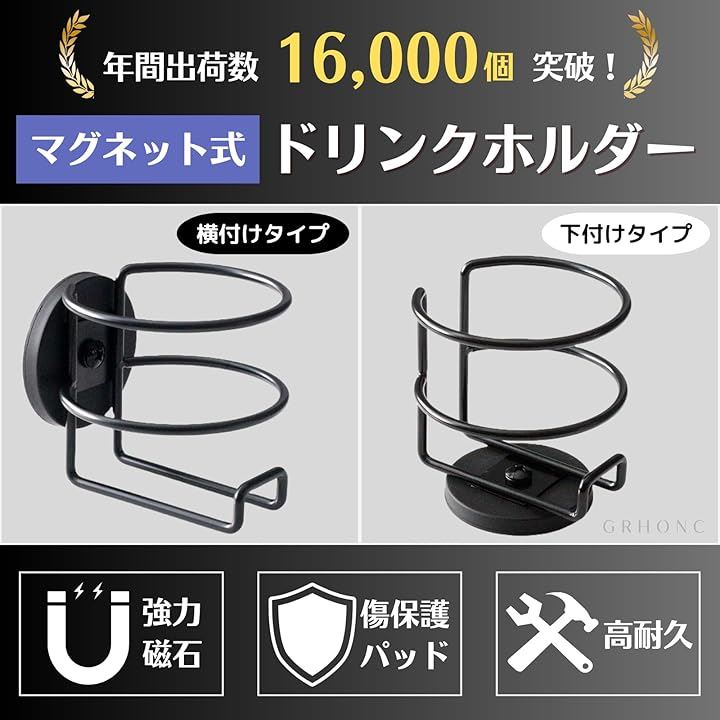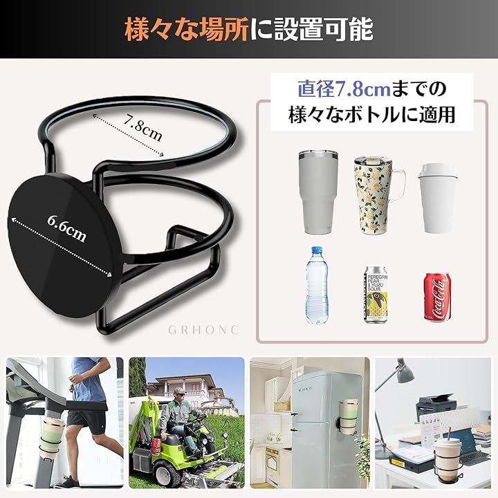 ドリンクホルダー マグネット 6個の磁石で強力固定 簡単設置 カップホルダー 車 デスク 船 芝刈り機