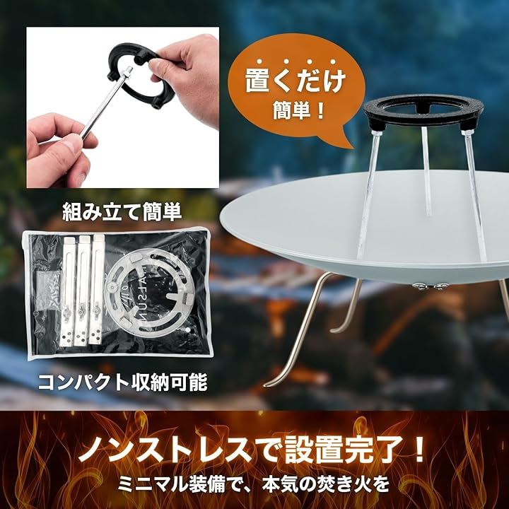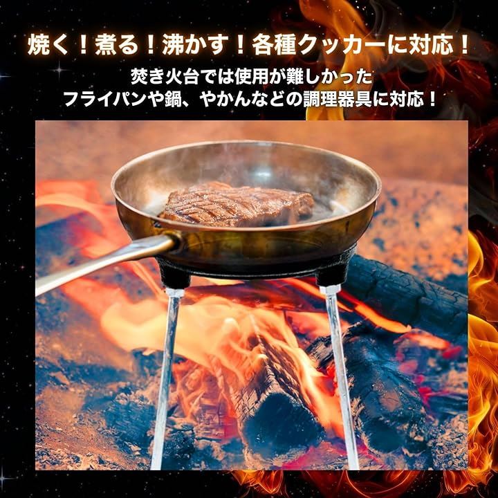 焚火スタンド 焚き火用五徳 ファイアーディスク対応 焚き火台五徳 クッカースタンド