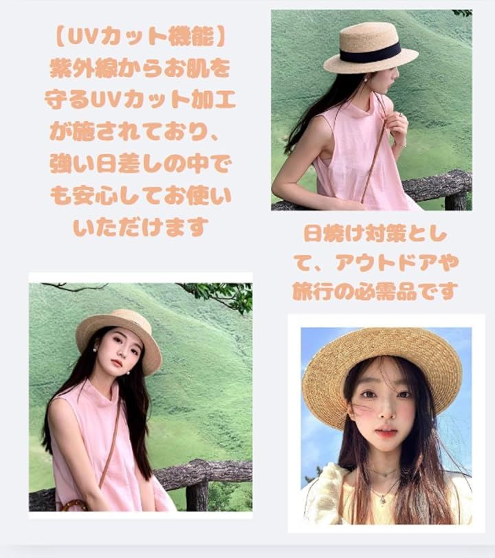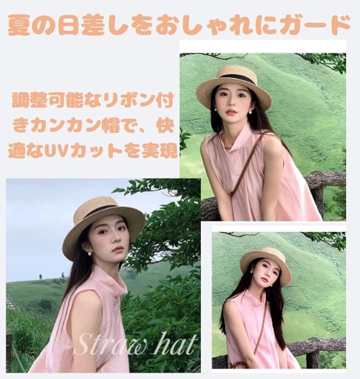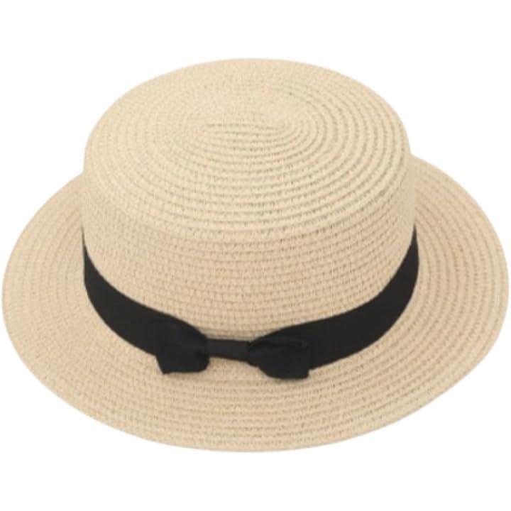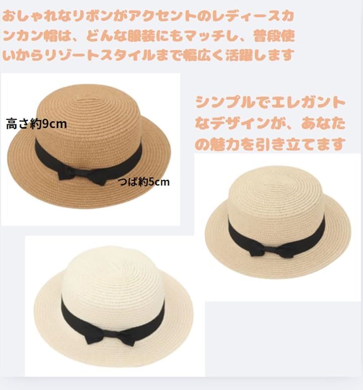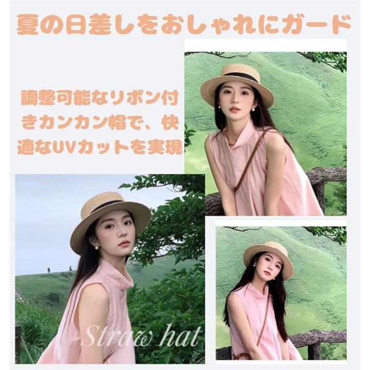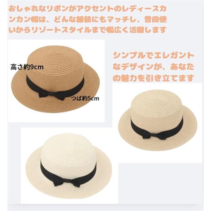 カンカン帽 レディース UVカット 紫外線対策 麦わら帽子 リボン ストローハット ペーパーハット