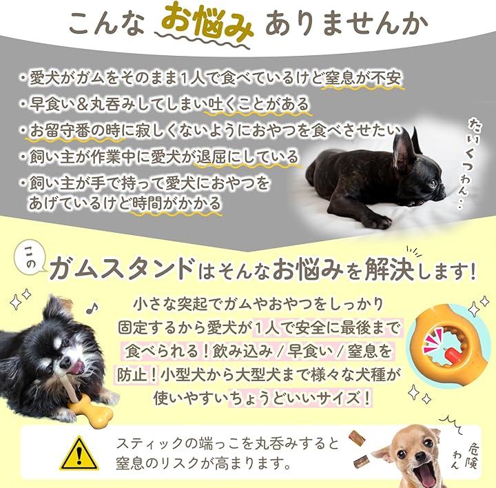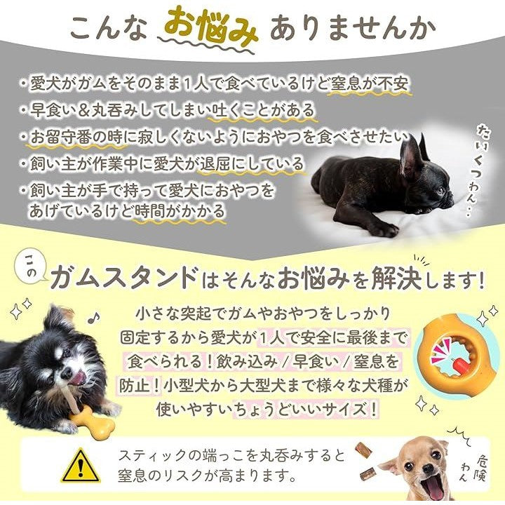 このようなお悩みはありませんか? ・ガムやおやつを愛犬にあげる際に手で上げているけど時間がかかる ・愛犬がガムをそのまま1人で食べているけど窒息が不安。