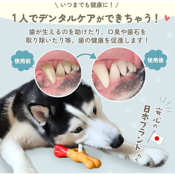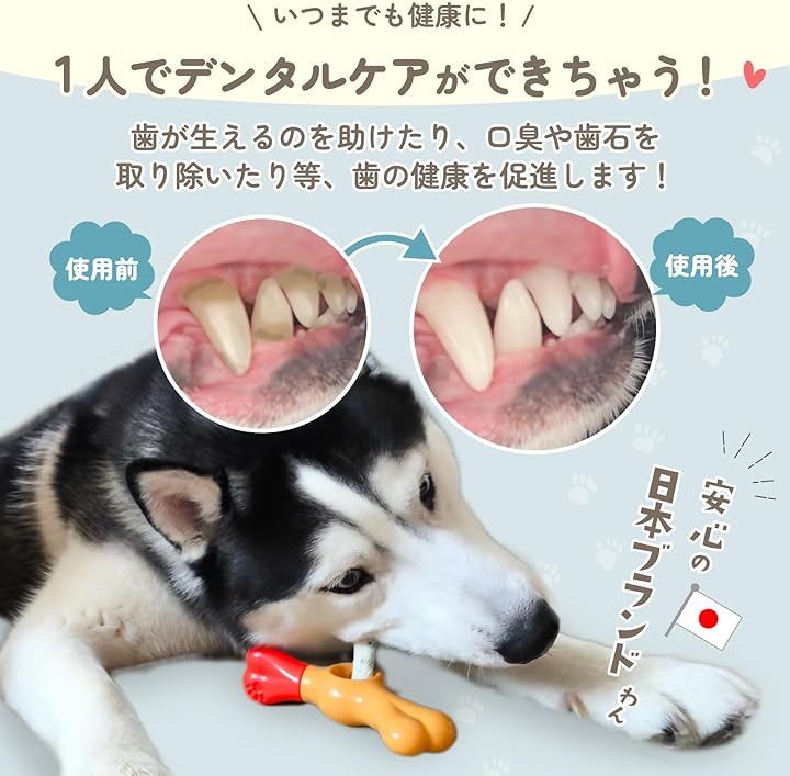ガムやおやつを噛むことでストレスが解消できるだけではなく、歯が生えるのを助けたり、歯の健康を促進します。一人でデンタルケアができちゃう。歯の健康をサポート。