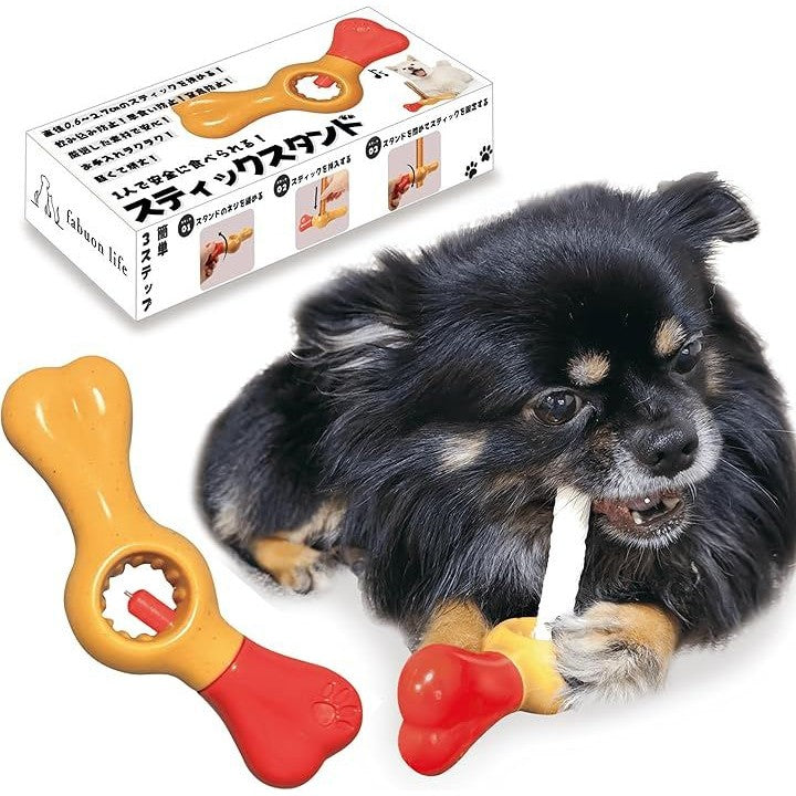 早食い&丸のみしてしまい吐くことがある ・飼い主が作業中に愛犬が退屈にしている ・お留守番の時に愛犬がさみしくないようにしてあげたい このガムスタンドはそんなお悩みを解決します。 ガムをしっかりホールドするから愛犬が一人で最後までガムやおやつを安全に食べられる。飲み込み防止。早食い防止。窒息防止。 サイズは横16cmx縦5cmx高さ3cm、重さは134gだから小型犬から大型犬まで様々な犬種が使いやすいちょうどいいサイズ。 愛犬にはおやつホルダーが必須です。スティックの端っこを飲み込むと窒息のリスクが高まります。