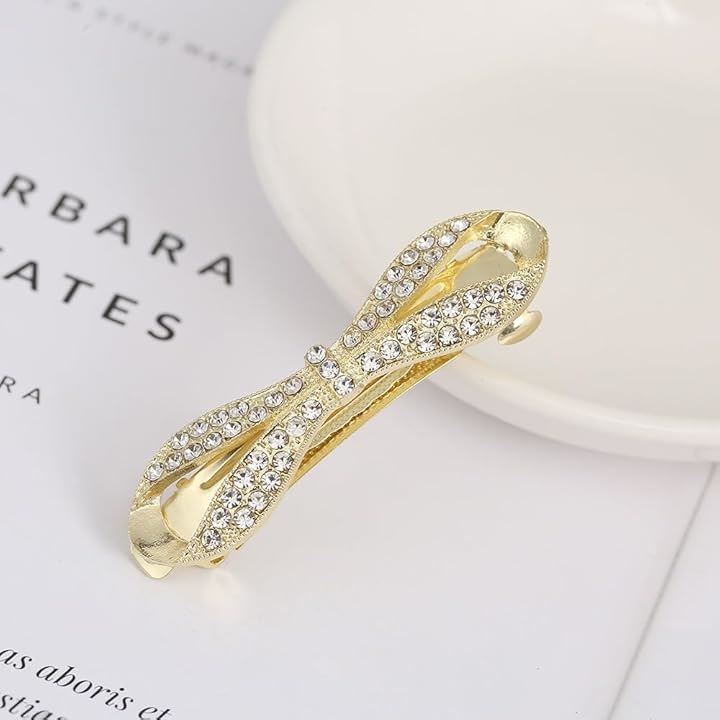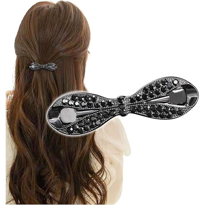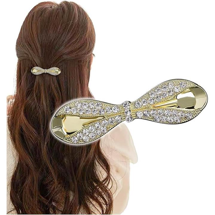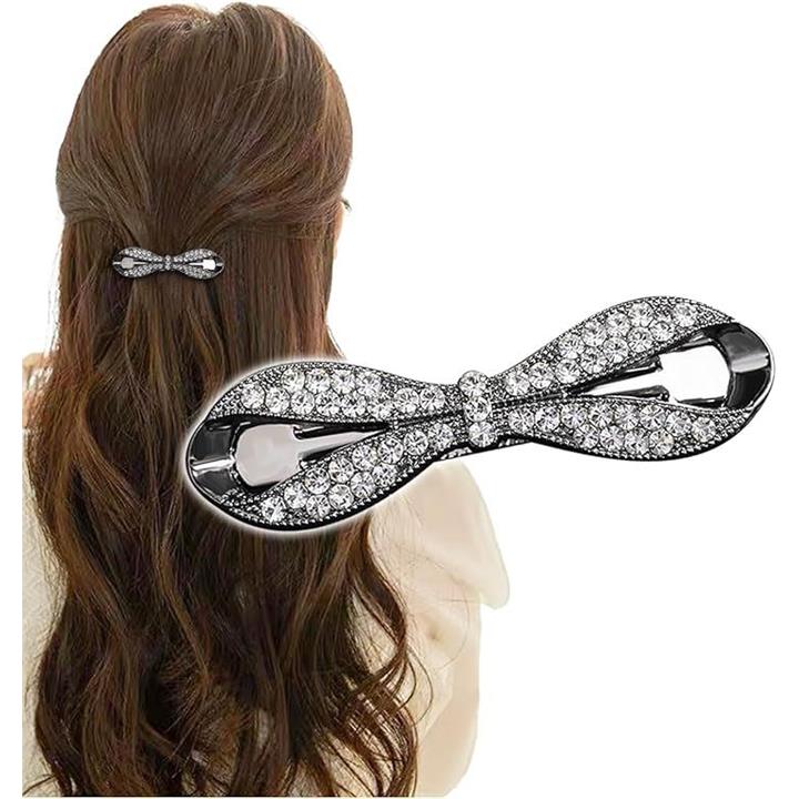 バレッタ しっかり留まる 小さめ ビジュー リボン 髪留め ヘアクリップ おしゃれ 大人 パール