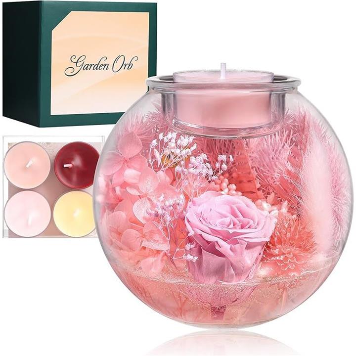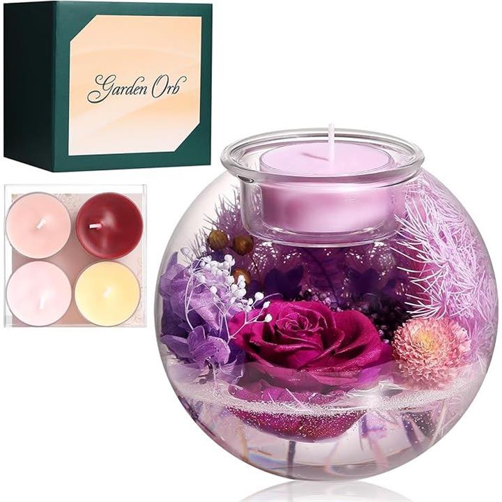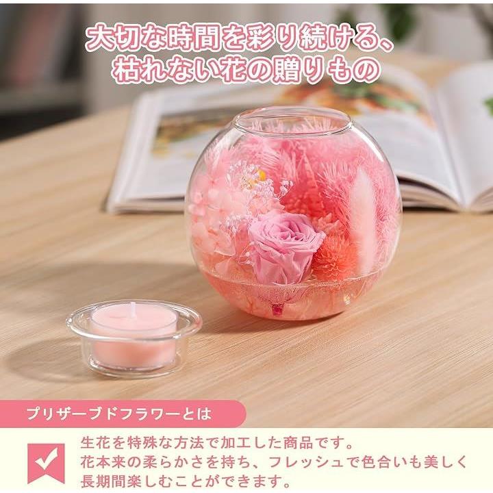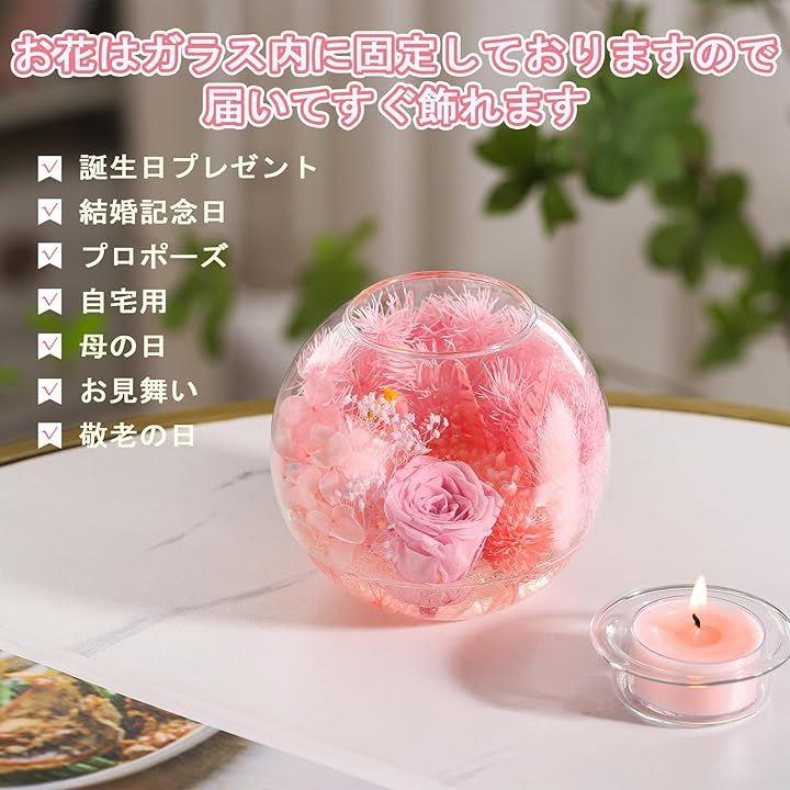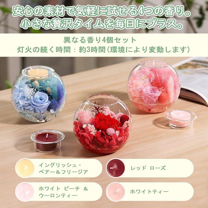 プリザーブドフラワー 誕生日プレゼント 女性 母の日 ドライフラワー 妻 彼女 友達 お母さん 結婚祝い 結婚記念日 引っ越し祝い 退院祝い 卒業祝い 就職祝い 退職祝い 枯れない花 アロマキャンドル4個セット 化粧箱入り メッセージカード付き