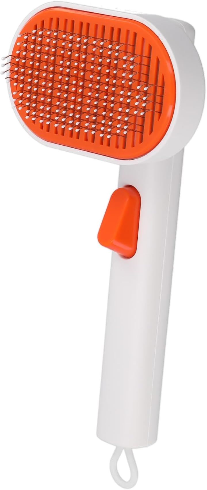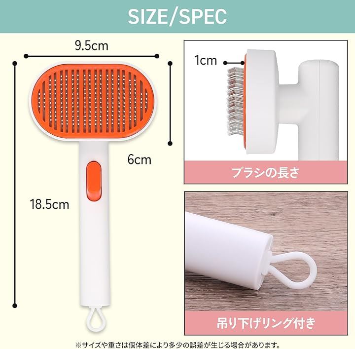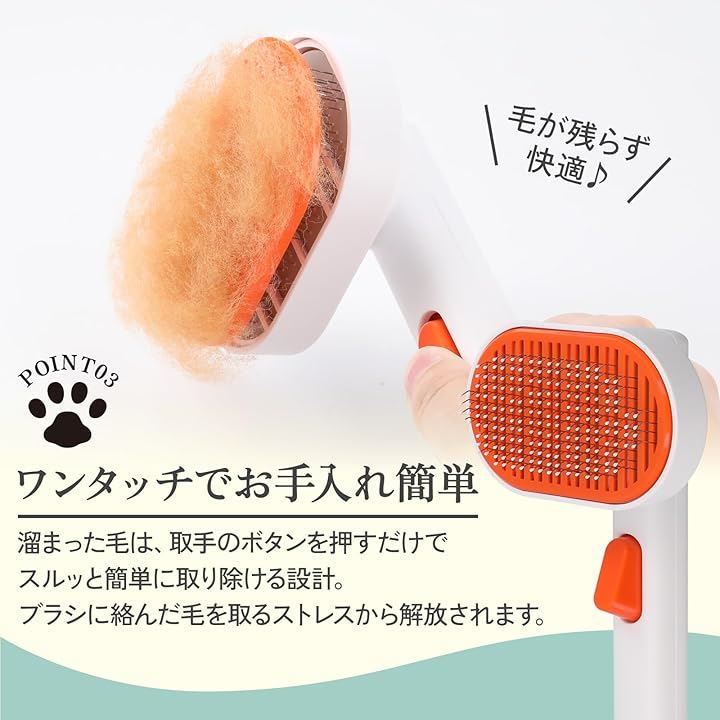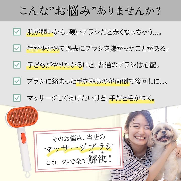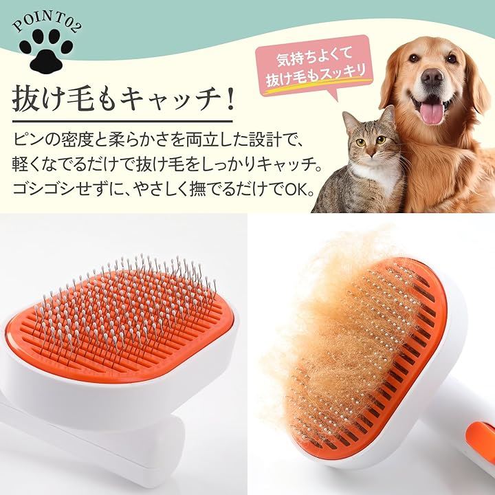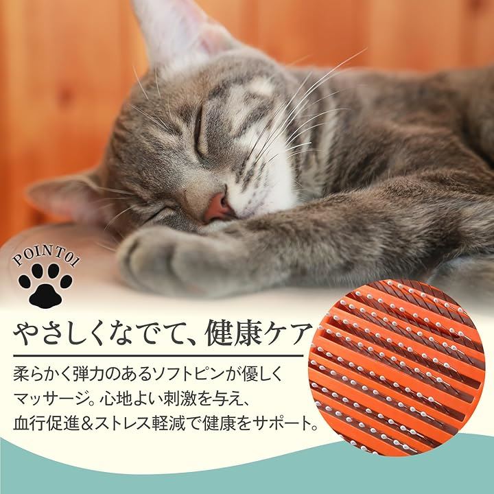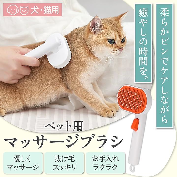 ペットマッサージブラシ 犬猫兼用 ソフトピン設計 抜け毛除去 ワンタッチ毛取り機能 お手入れ簡単 スリッカーブラシ