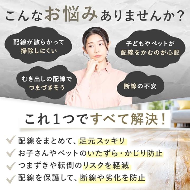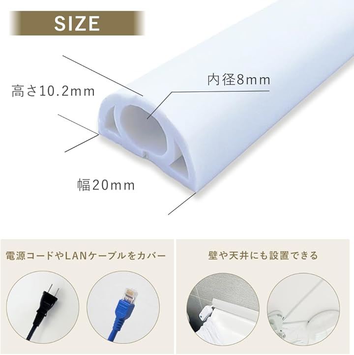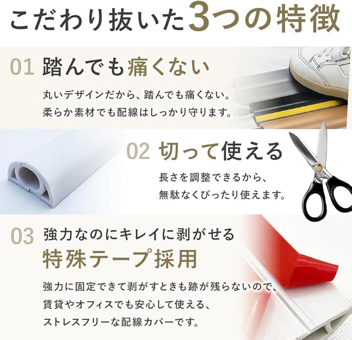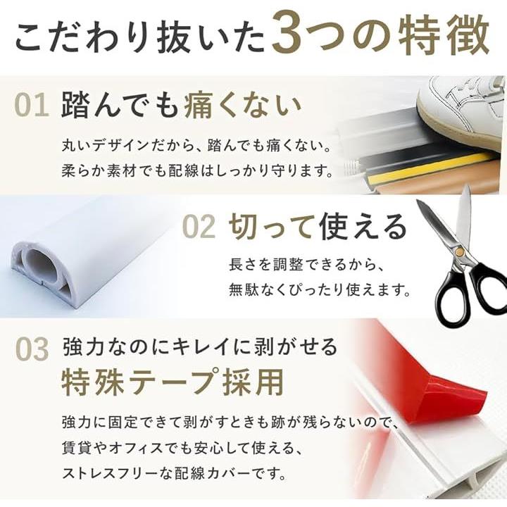 カットできる配線カバー モール ケーブルカバー コードカバー 配線隠し 床 LANケーブル プロテクター両面テープ付き PVC製 難燃素材 絶縁性 柔らかい カット可能 耐衝撃
