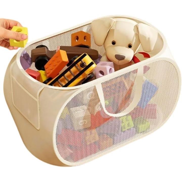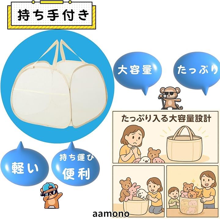 ぬいぐるみ おもちゃ 収納 ボックス バスケット カゴ 折りたたみ 大容量 軽量 ネット メッシュ