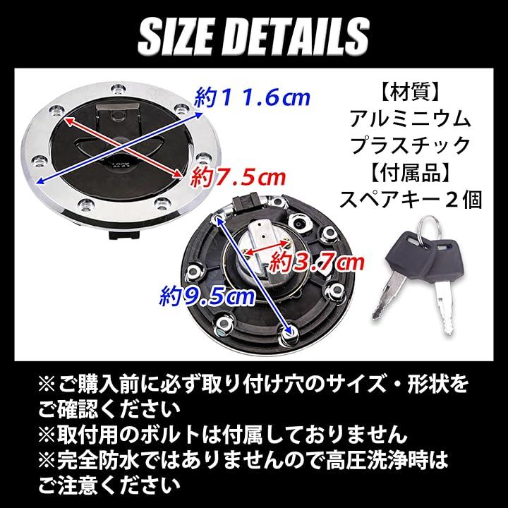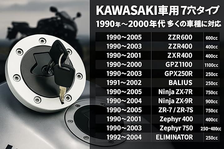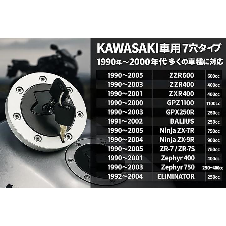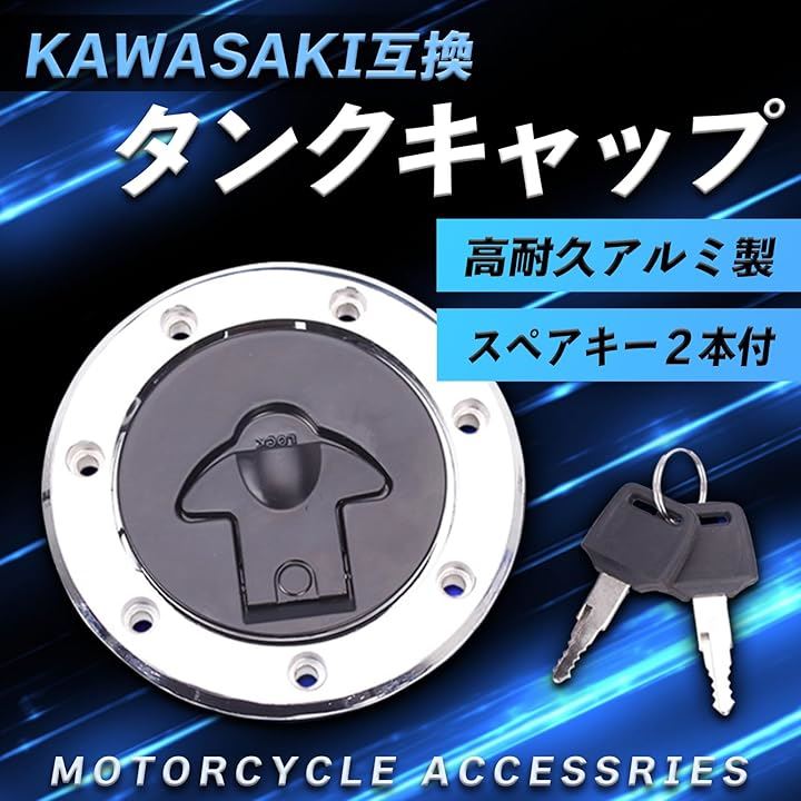 互換品 互換モデル バイク用 タンクキャップ ZZR600対応 鍵2本付き 7穴 汎用 カワサキ