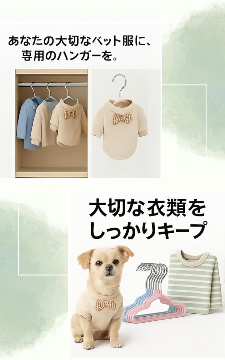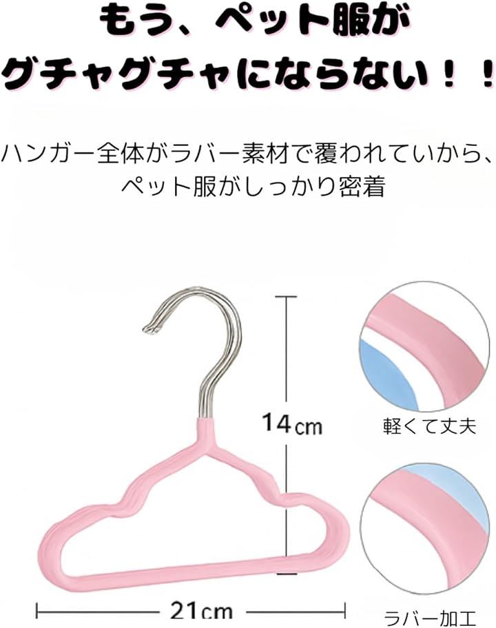 犬用ハンガー 小型犬 ずれ落ちない ステンレス製ラバー加工 ペット用品収納 10本セット ベビーハンガー 軽量&耐久性 実用派ハンガー