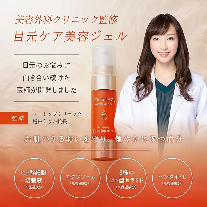 エクソソーム 目元美容液 10g ヒト幹細胞高濃度10.5%配合 培養上清液 ビタミンC アルギニン クエン酸 TOP STAGE リンクルジェル イートップクリニック 美容外科 増田えりかプロデュース