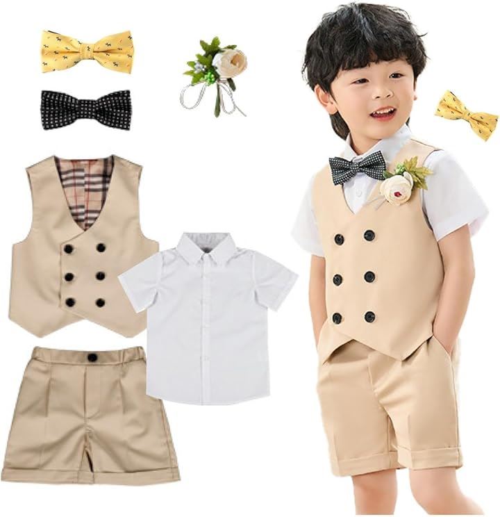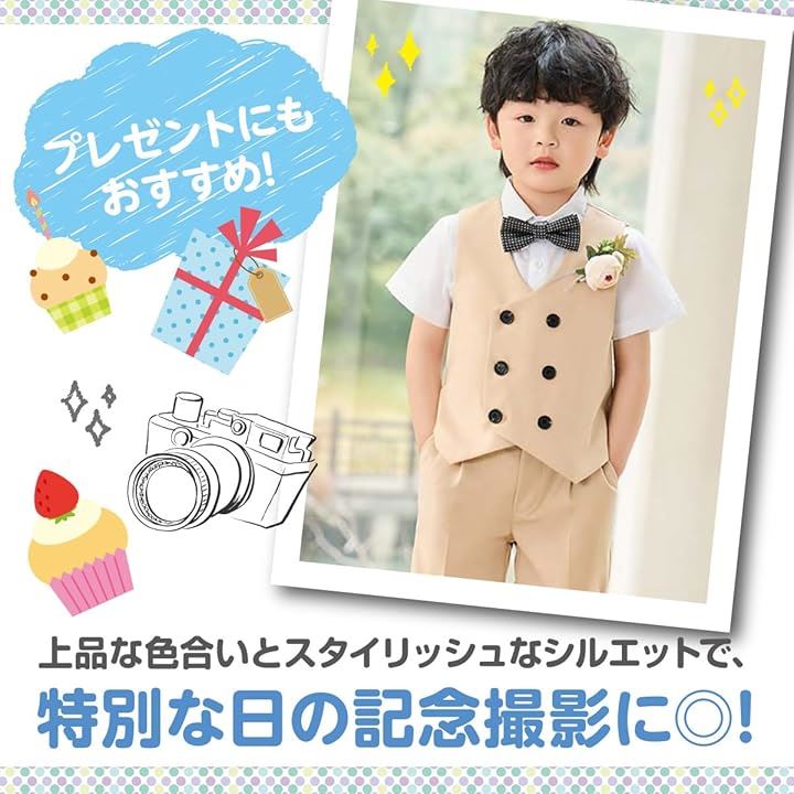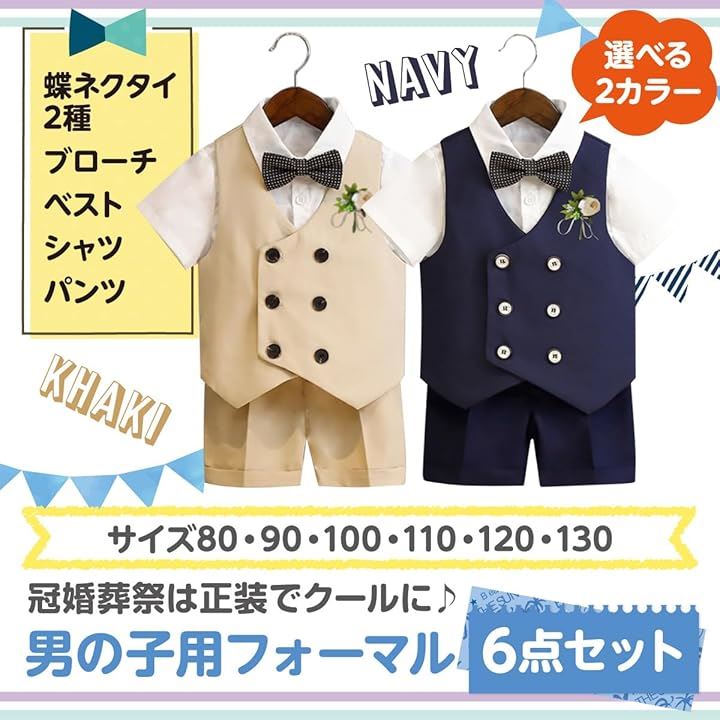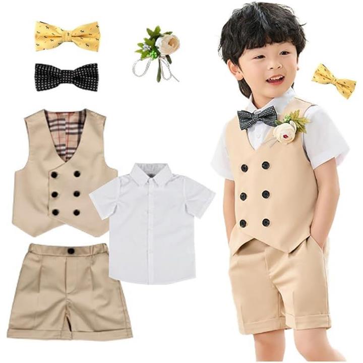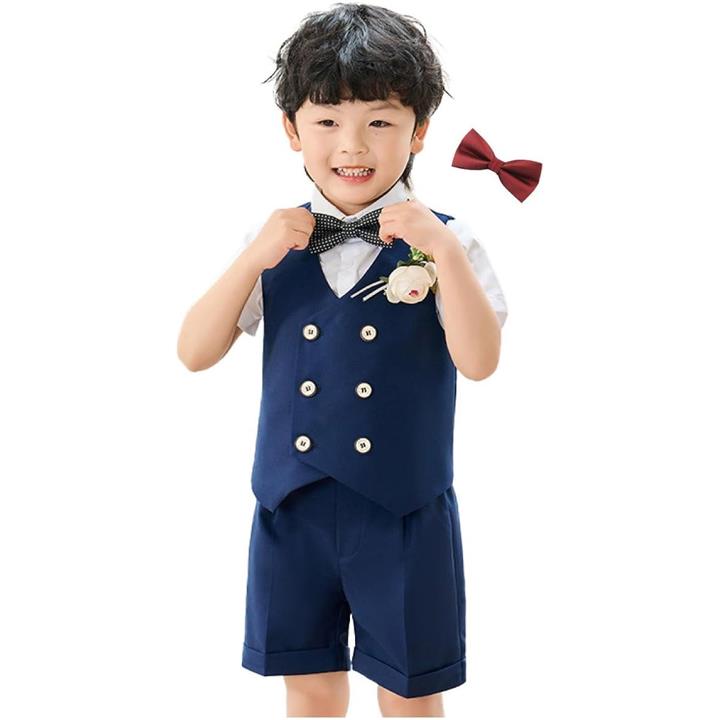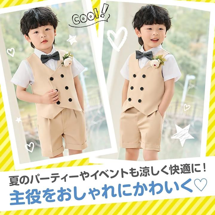 [しあわせ倉庫] フォーマル スーツ 男の子 半袖 6点セット 夏 シャツ ベスト ハーフパンツ 蝶ネクタイ ベビー服 キッズ 小学生 夏服 子供服 結婚式 誕生日 記念撮影 発表会 七五三 プレゼント |