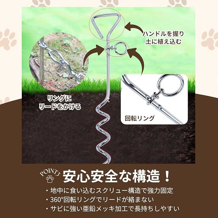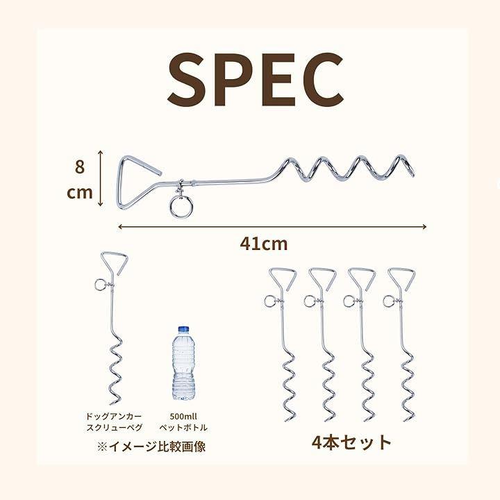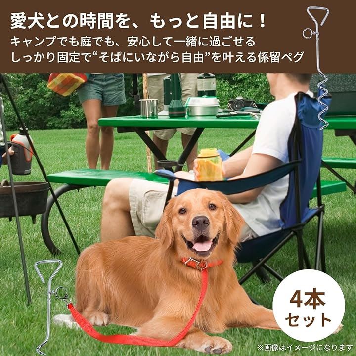 ドッグアンカー スクリューペグ 4本セット 犬用 係留 杭 地面固定 キャンプ 散歩用 ドッグポール