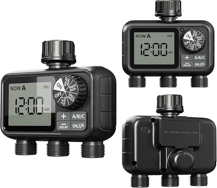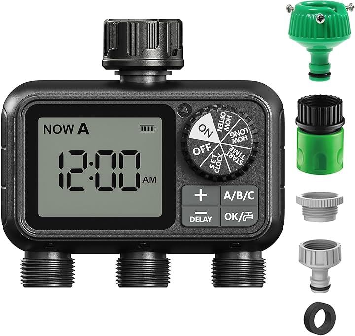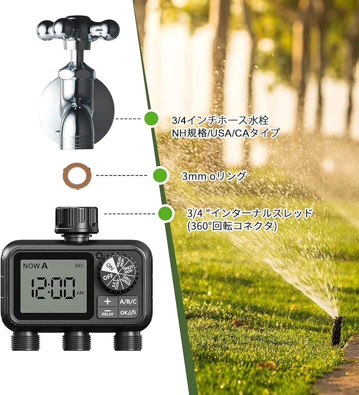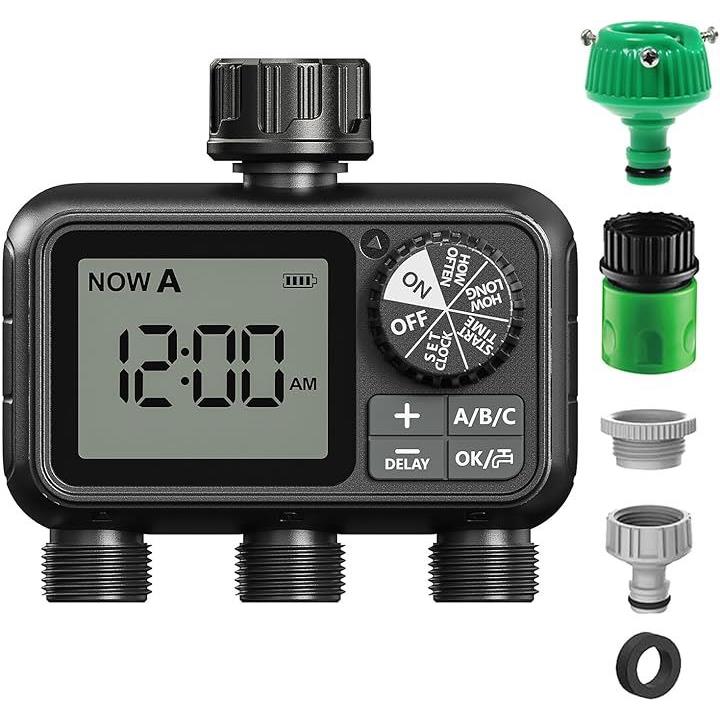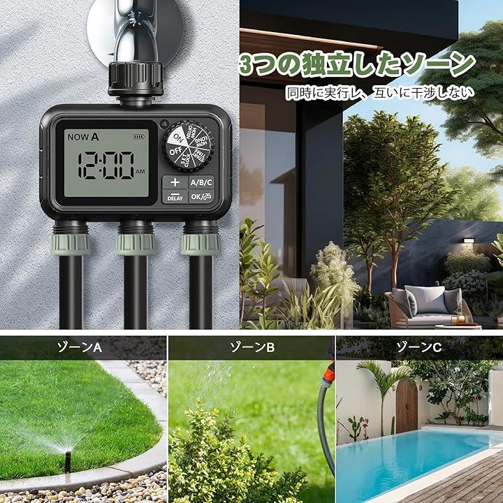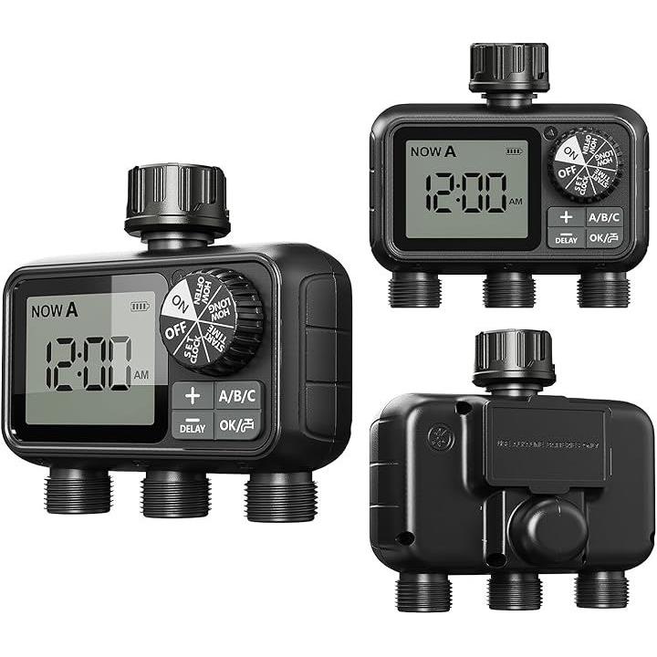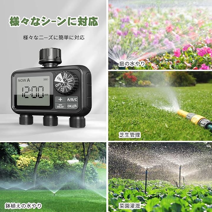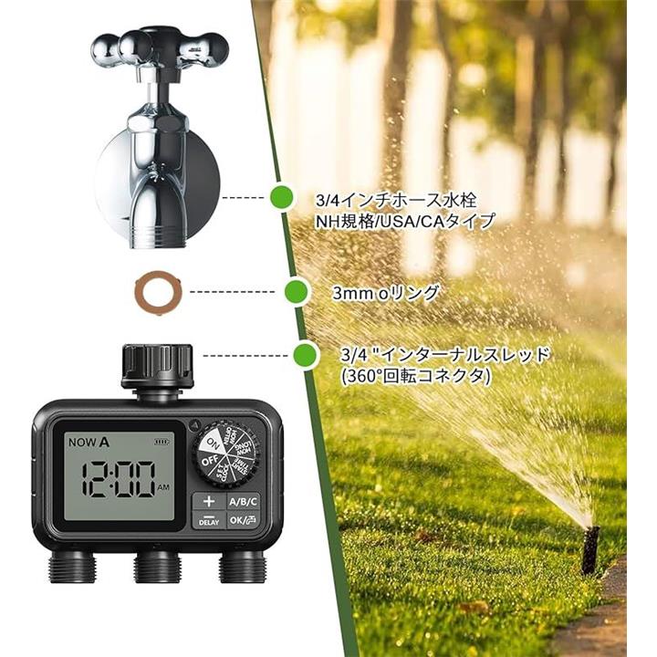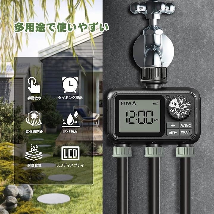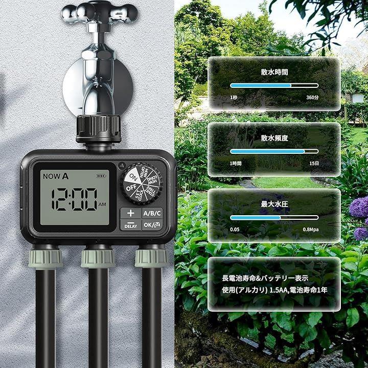 2025年新型 自動散水タイマー 散水ホース 3アウトレット 植物灌水 散水システム 散水用具 灌漑システム 給水 観葉植物 室内 鉢植え給水 自動灌漑/子供ロック/大雨遅延/手動灌漑 ブラック