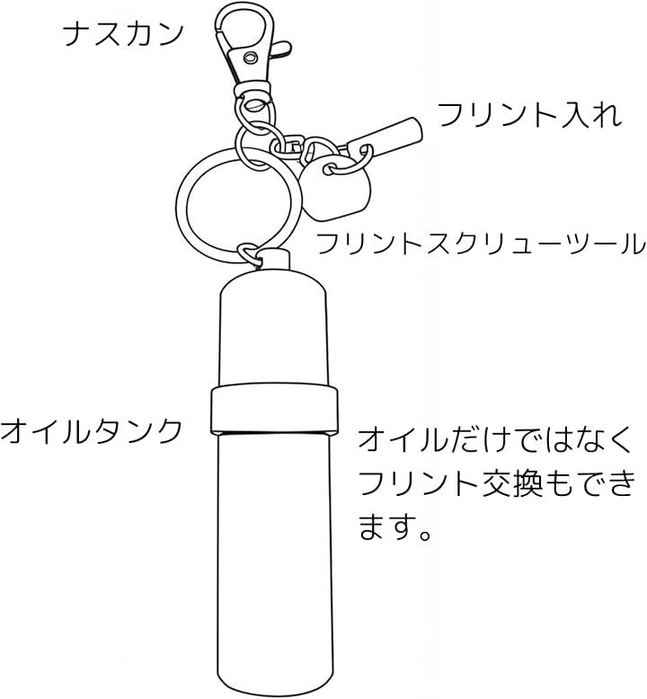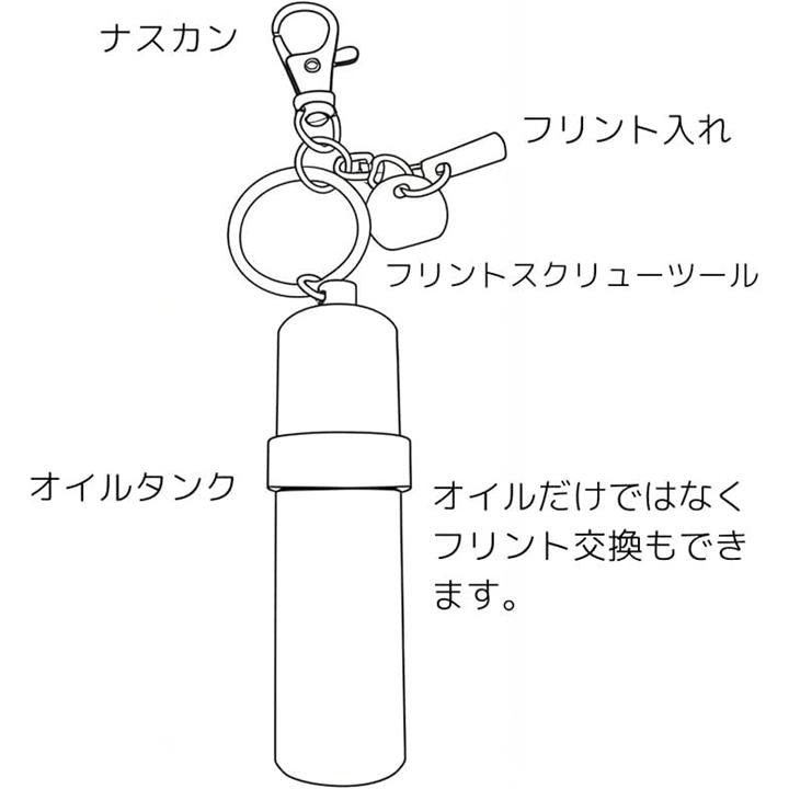 携帯用オイルタンク ZIPPO対応1回分 フリントホルダー付き フリント取付用工具付 8ml キーホルダー式 漏れ防止 ミニ燃料缶 登山/キャンプ用